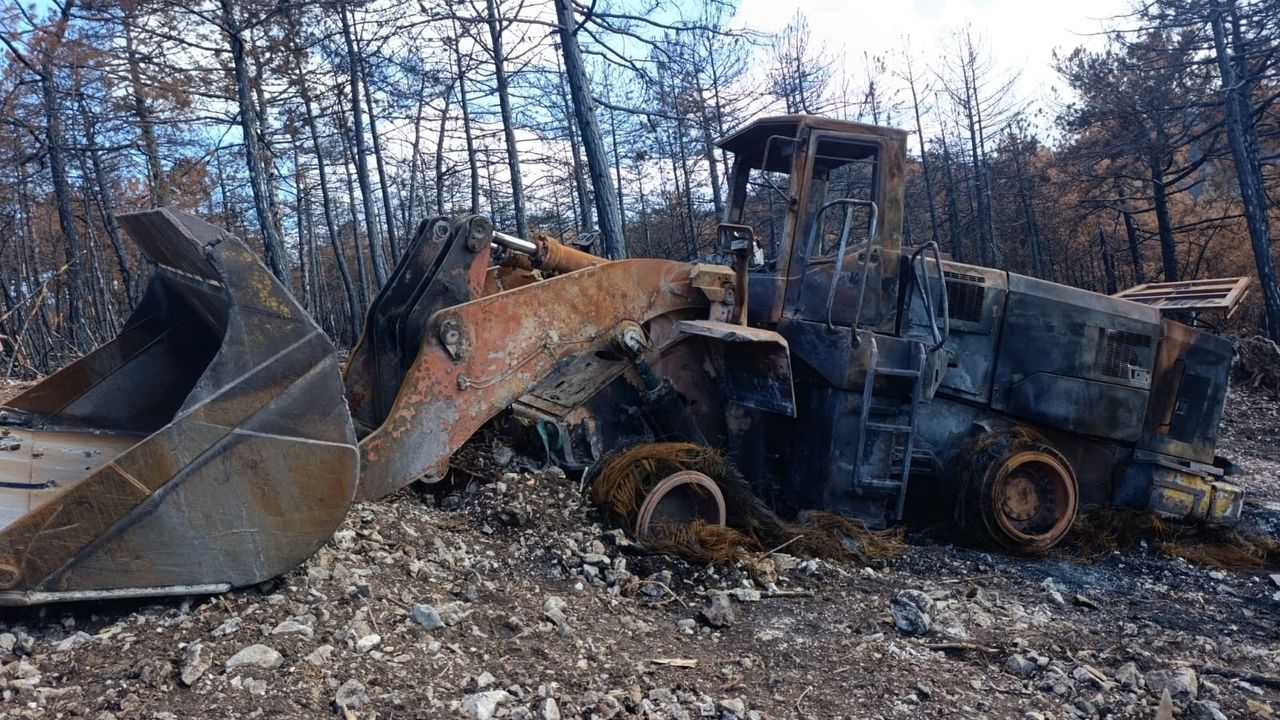 Bu kapsamda, özel bir maden işletmesine ait ekskavatör ve kepçe enkazı da ekipler tarafından bulunduğu noktadan çıkarıldı. Amatör kamera kayıtlarına yansıyan çalışmalarda, tonlarca ağırlıktaki iş makinesinin yangın sonrası kül halinin ekskavatör ve dozerlerle kaldırıldığı görüldü.