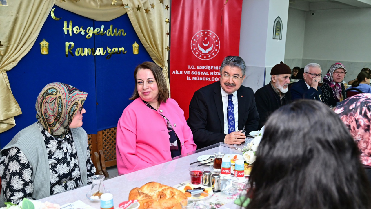 Eskişehir Valisi Dr. Erdinç Yılmaz ve eşi Doç. Dr. Şenay Yılmaz, Aile ve Sosyal Hizmetler İl Müdürlüğü tarafından Safiye Gönül Bayar Huzurevinde düzenlenen "2026 Yılı Ramazan Ayı Vefa Buluşması ve Nesiller Buluşması" adlı iftar programına katıldı.