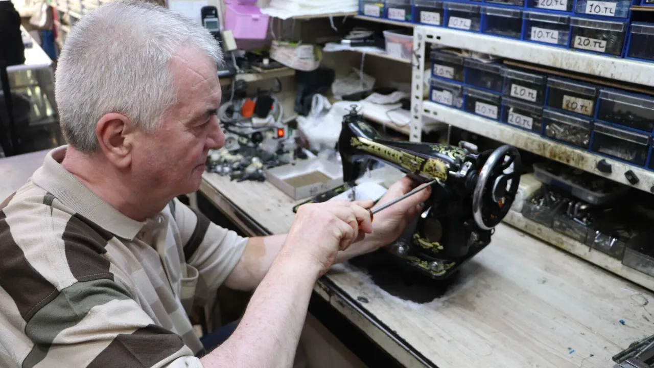 Eskişehir'de 40 yıldır dikiş makinelerinin yaşatılmasını sağlayan Salih Erçin, 100 yıllık dikiş makinelerini bile tamir ederek, zanaati tek başına yaşatmaya çalışıyor.