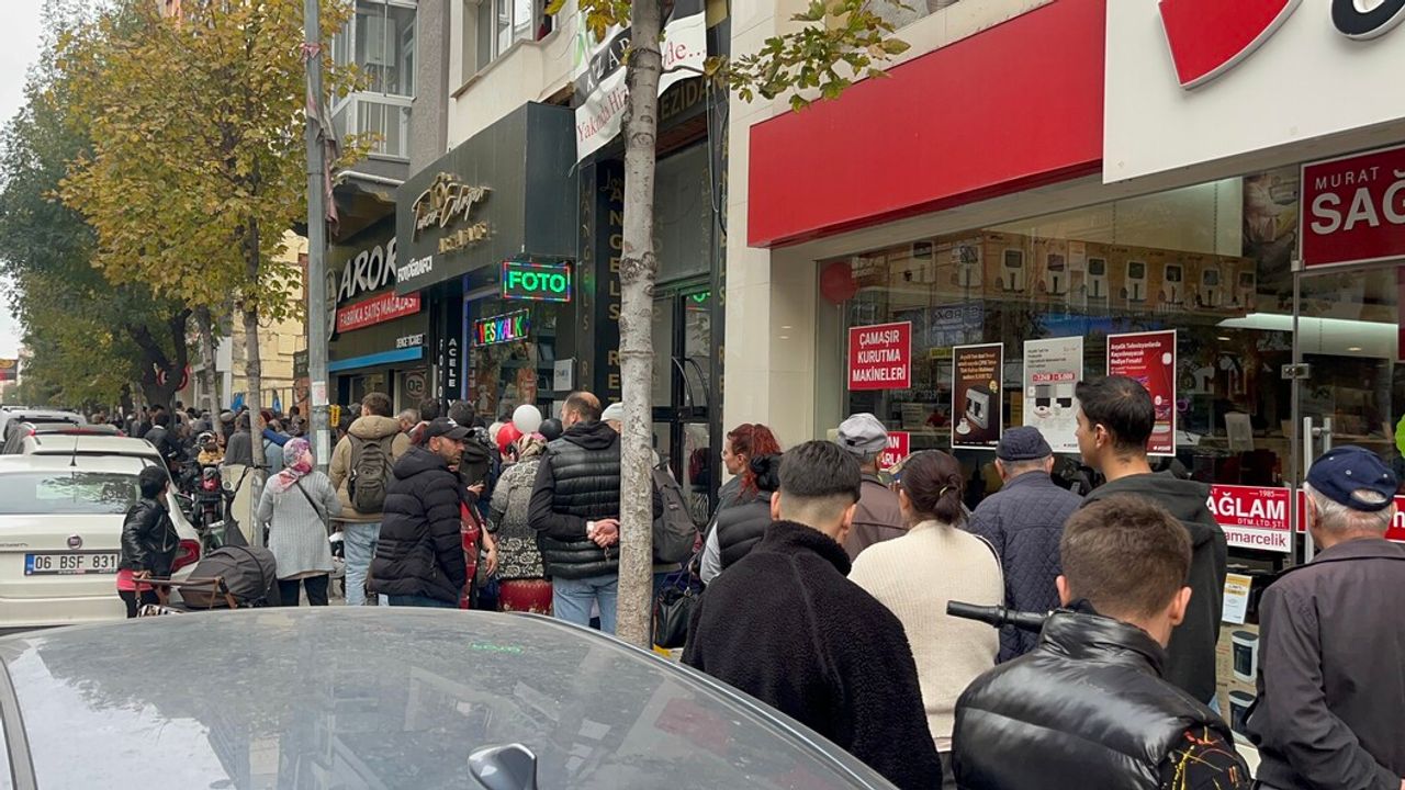 Eskişehir'de Sakarya-1 Caddesi'ndeki bir şubenin önünde sabahın erken saatlerinden itibaren yüzlerce metre kuyruk meydana geldi. Toplu Konut İdaresi Başkanlığı (TOKİ) güvencesiyle ev sahibi olmak için vatandaşlar saatlerce sıra bekledi. Öte yandan, kuyrukta zaman zaman gergin anların da yaşandı.
