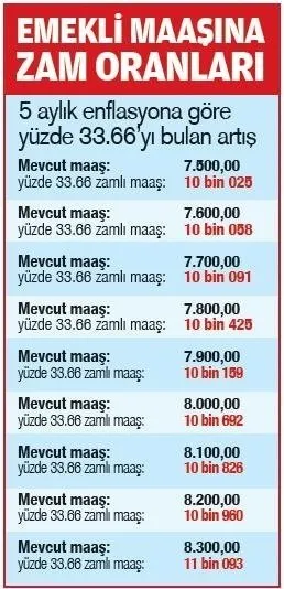 OVP'nin mali disiplin konusunda yol haritasının çizilmesi sonrası emekliye zam düzenlemesi öncelikli gündem halini aldı. Aralık 2022'de 3 bin 500 TL olarak uygulanan taban emekli maaşı, Ocak ayında önce 5 bin 500 TL ardından Nisan 2023'te 7 bin 500 TL'ye yükseltildi. Bu 6 aylık dilimde toplam artış yüzde 114'ü aştı.Uzlaşma usulü tutar belirlenecek.