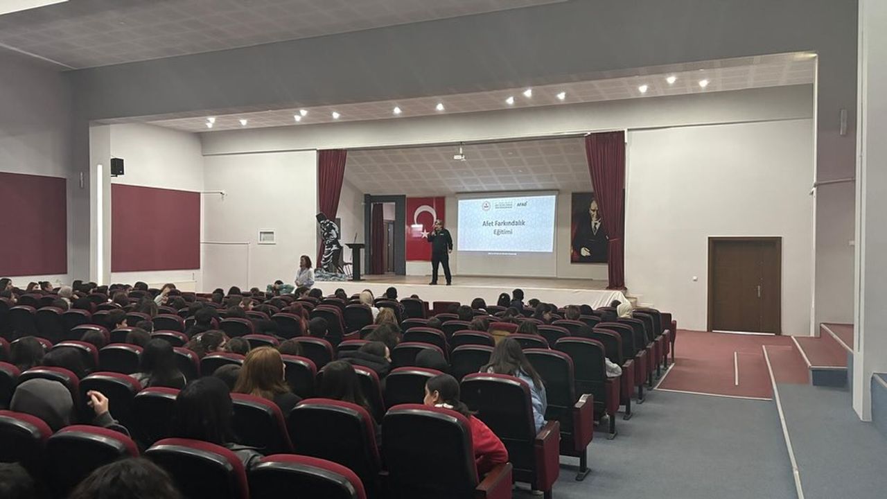 Eskişehir AFAD ekipleri tarafından Gazi Mesleki ve Teknik Anadolu Lisesi öğrencilerine yönelik afet ve yangın farkındalık eğitimi gerçekleştirildi.