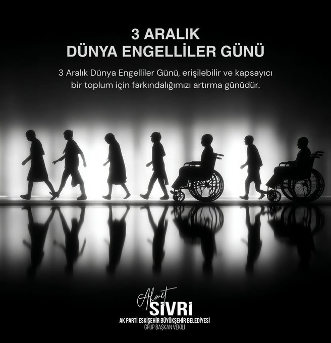 AK Parti Grup Başkanvekili Ahmet Sivri, 3 Aralık Dünya Engelliler Günü dolayısıyla yaptığı açıklamada, günün daha erişilebilir, kapsayıcı ve adil bir dünyanın mümkün olduğunu hatırlattığını belirtti.