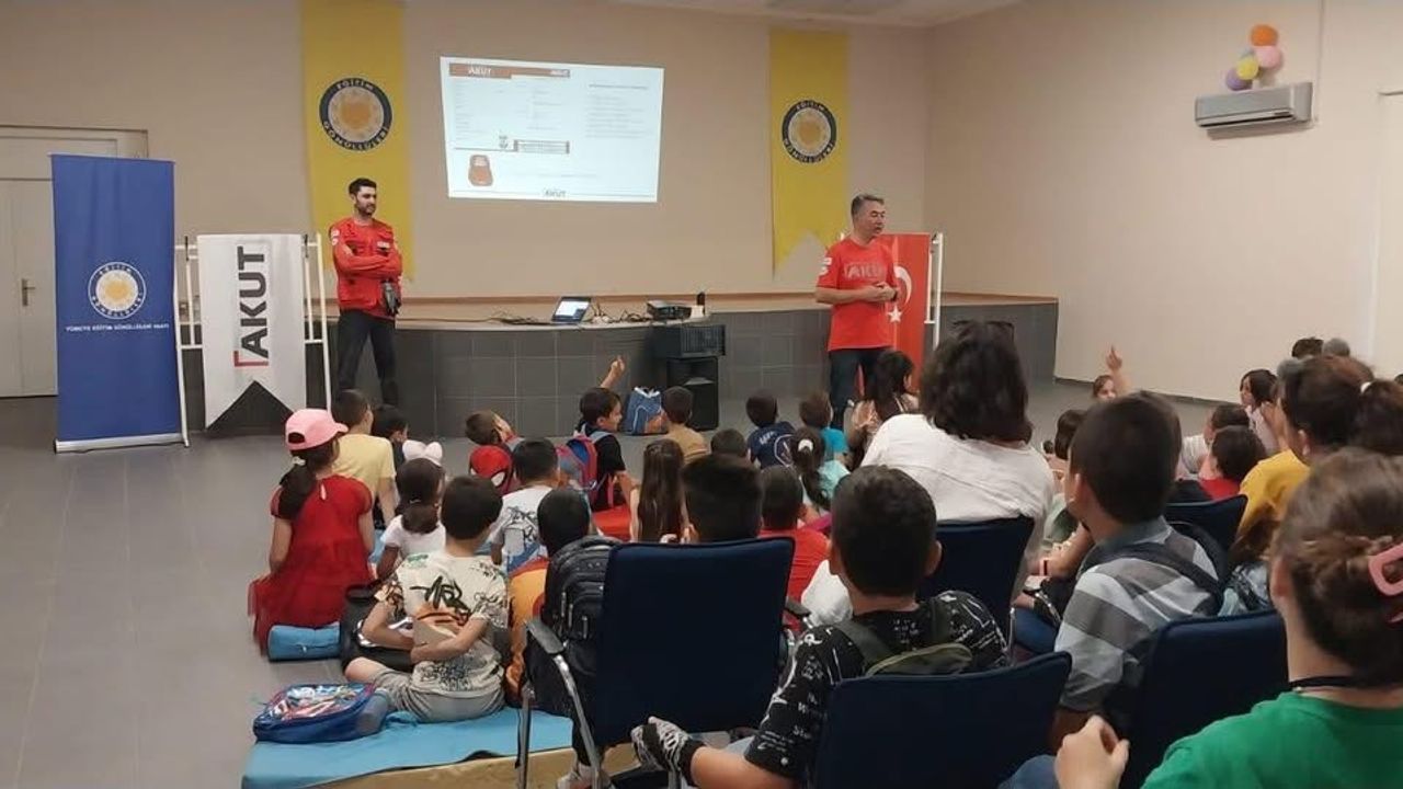 AKUT gönüllüleri, afetlere karşı bilinçli bireyler yetiştirilmesinin önemine dikkat çekerken, seminer sonunda öğrencilere yönelik uygulamalı bilgiler de aktarıldı.