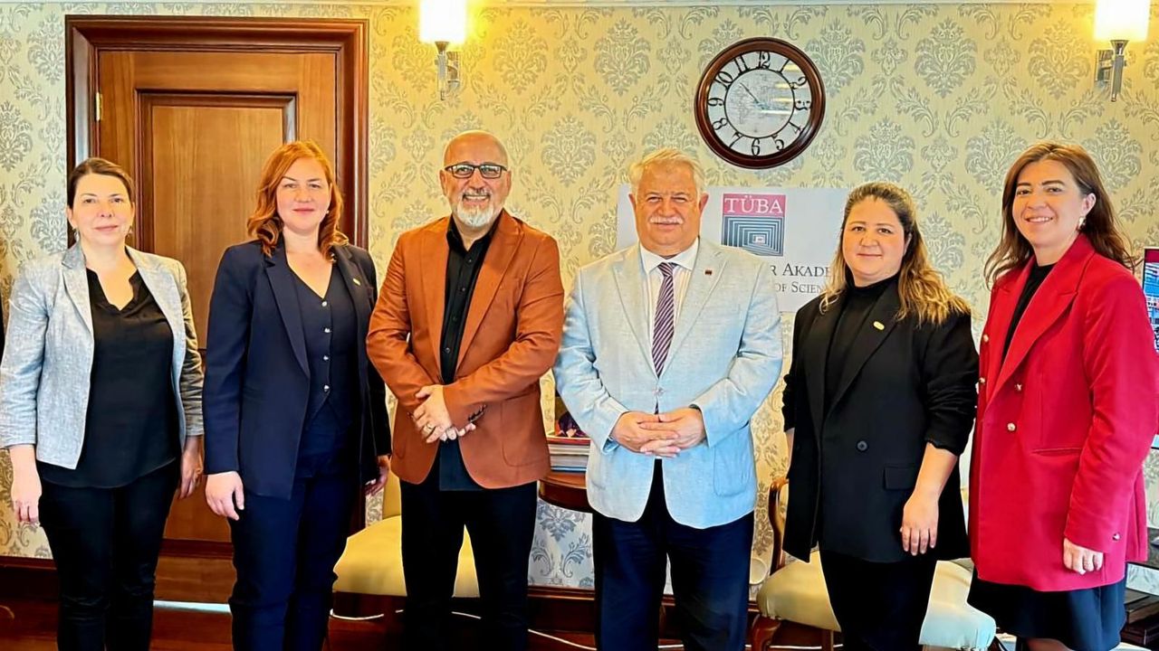 Heyet, TÜBA Başkanı Prof. Dr. Muzaffer Şeker ile bir araya gelerek, akademi bünyesindeki yürütülen çalışmalar, araştırma destekleri, bilim politikaları ve gelecek dönem planları hakkında bilgi aldı.