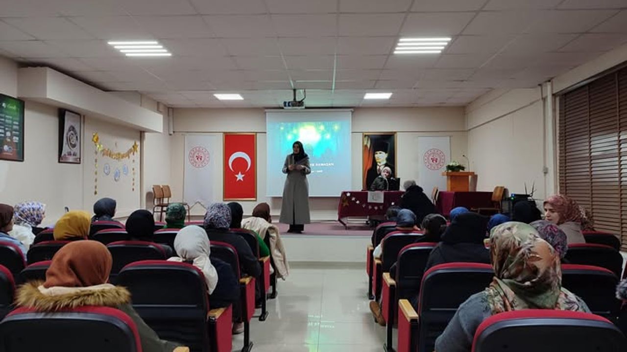 Etkinlikte Odunpazarı İlçe Vaizi Dr. Tuba Kevser Şahin, öğrencilere yönelik kapsamlı bir sunum yaptı.