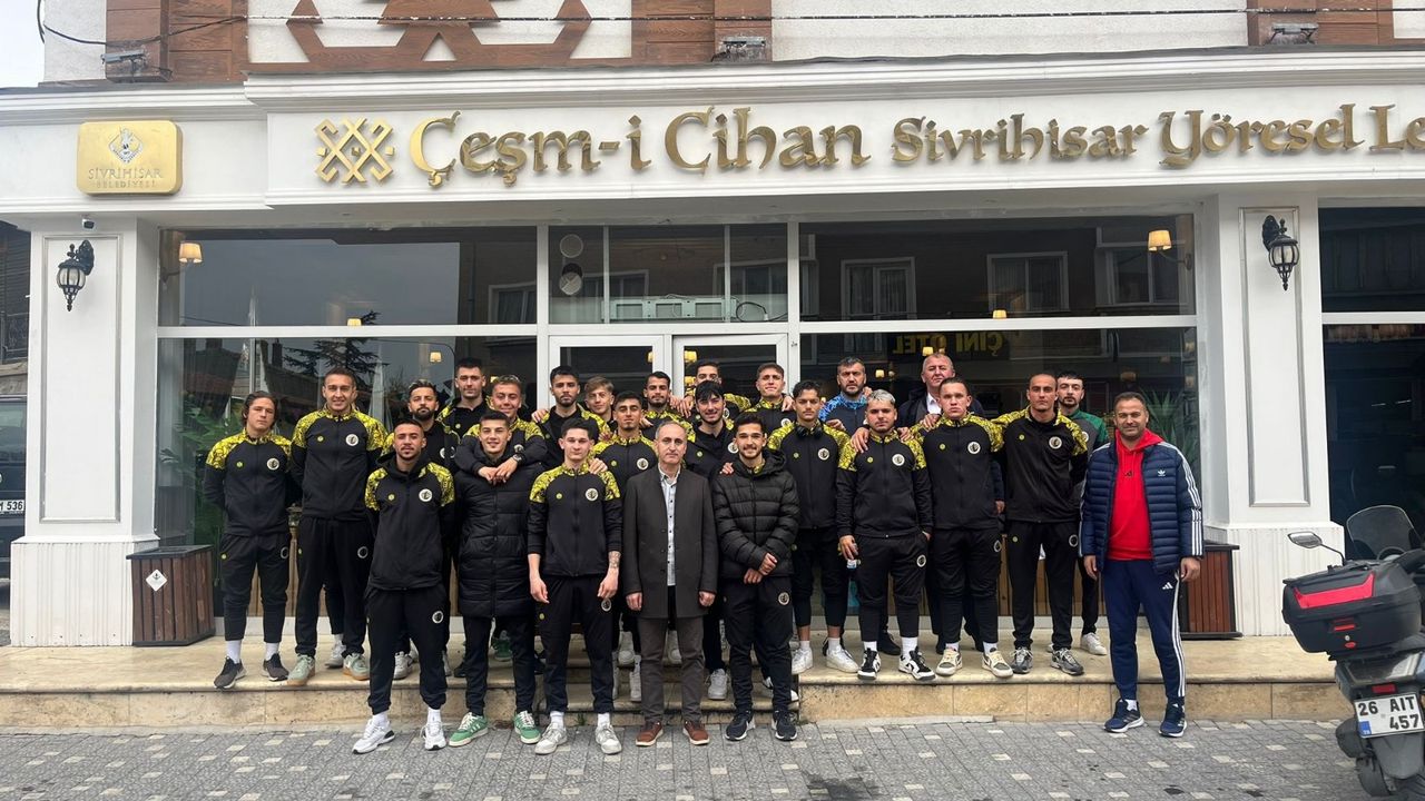 Teknik direktörleri Oktay Arıkan nezaretinde kritik maçın hazırlıklarını tamamlayan ve bugün Ankara deplasmanına giden sarı-siyahlı kafileyi, Sivrihisar’da ağırlayan Sivrihisar Belediye Başkanı Habil Dökmeci, 2 Eylül Spor Kulübünü misafir ederek zorlu maç öncesi moral yükledi.
