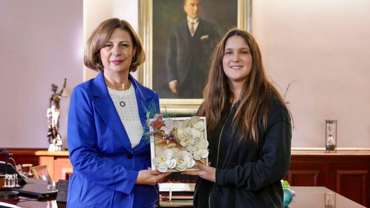 Tepebaşı Belediye Başkanı Ahmet Ataç'ın kızı Zeynep Ataç, Eskişehir Büyükşehir Belediye Başkanı Ayşe Ünlüce'yi makamında ziyaret etti.