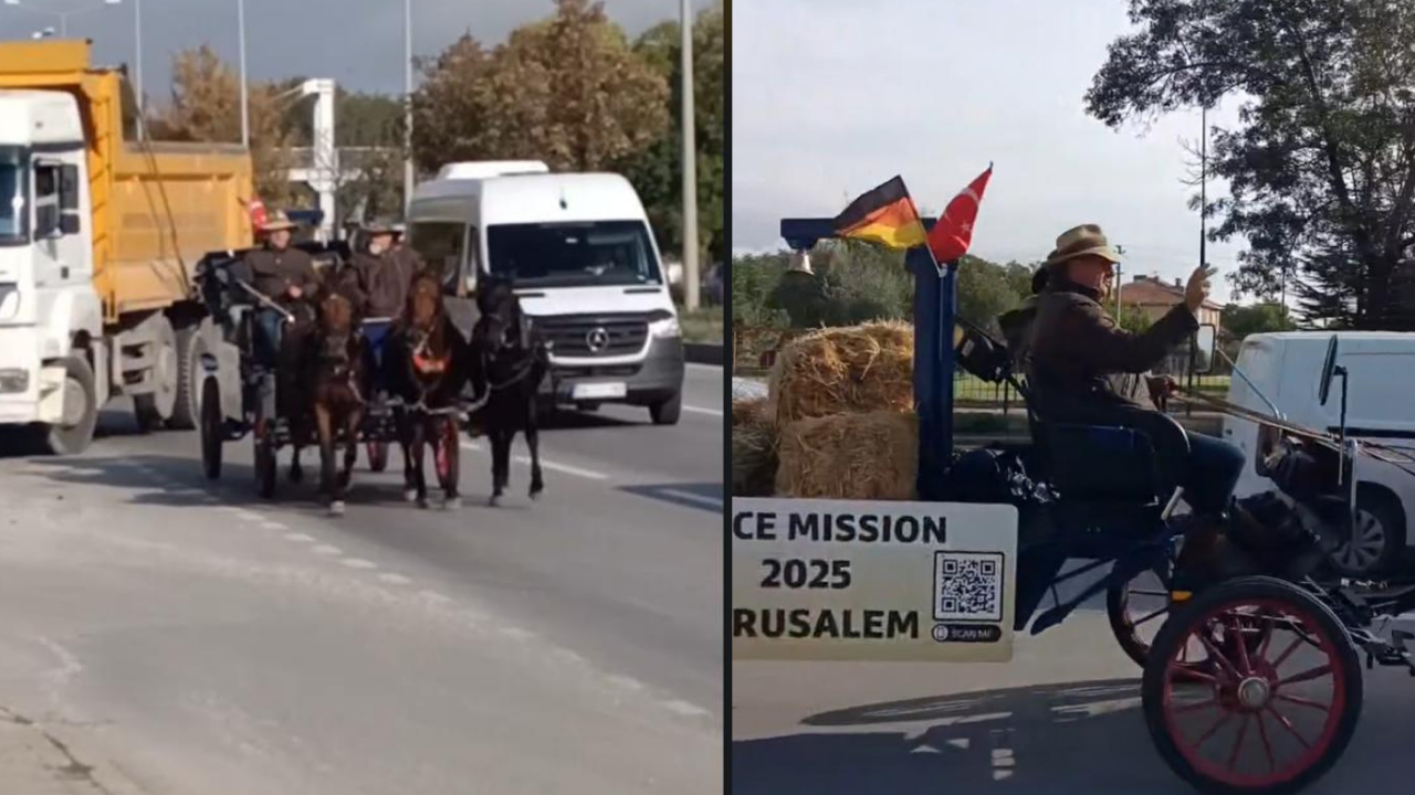 İki Alman çiftçi, II. Dünya Savaşı’nın bitişinin 80. yılında barış, hoşgörü ve dostluk çağrısı yapmak amacıyla Berlin’den Kudüs’e at arabasıyla yola çıktı.