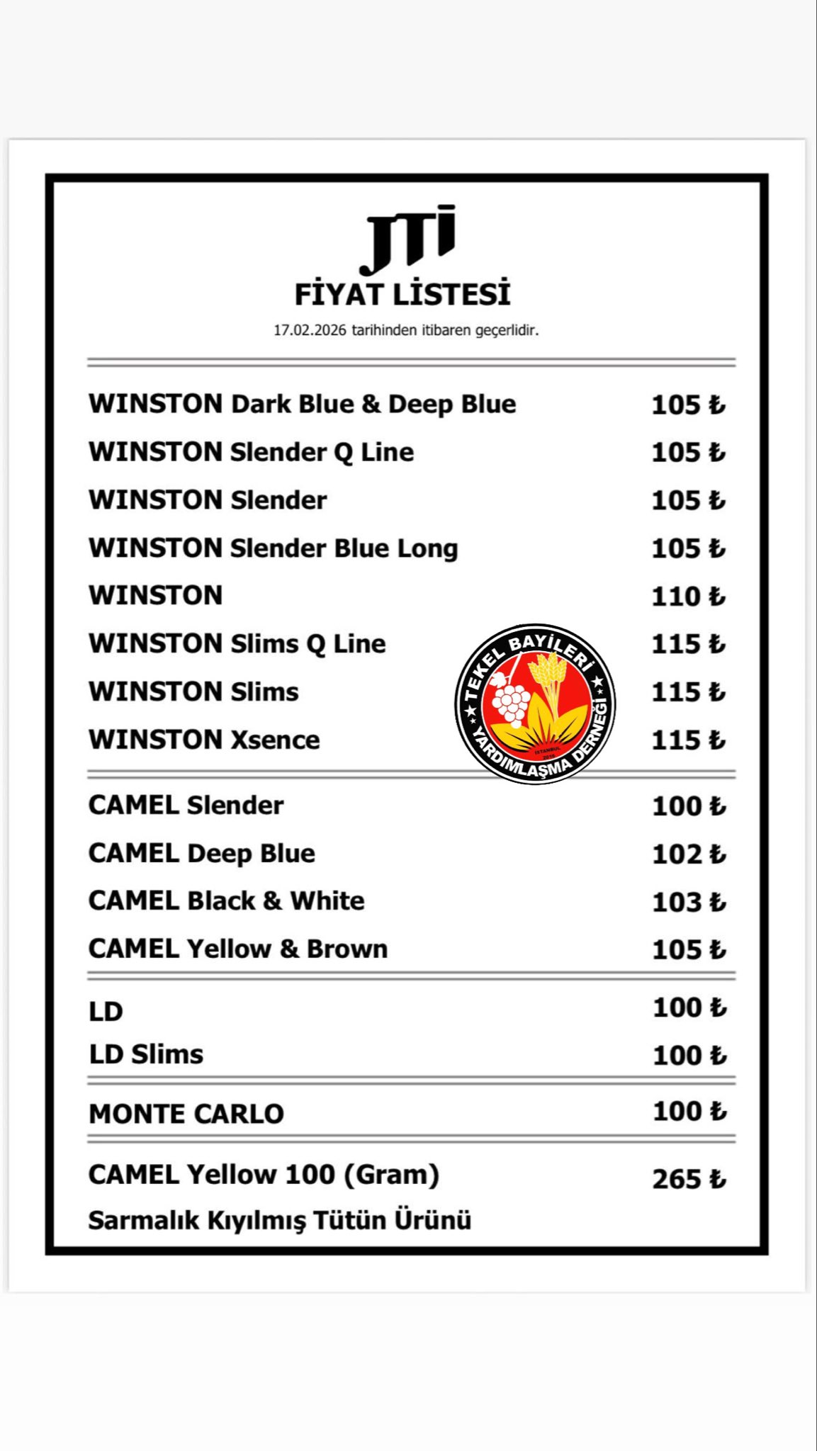 Tekel Bayileri Yardımlaşma Derneği Başkanı Erol Dündar, sosyal medya hesabından yaptığı açıklama JTI sigara grubuna zam geldiğini duyurdu.