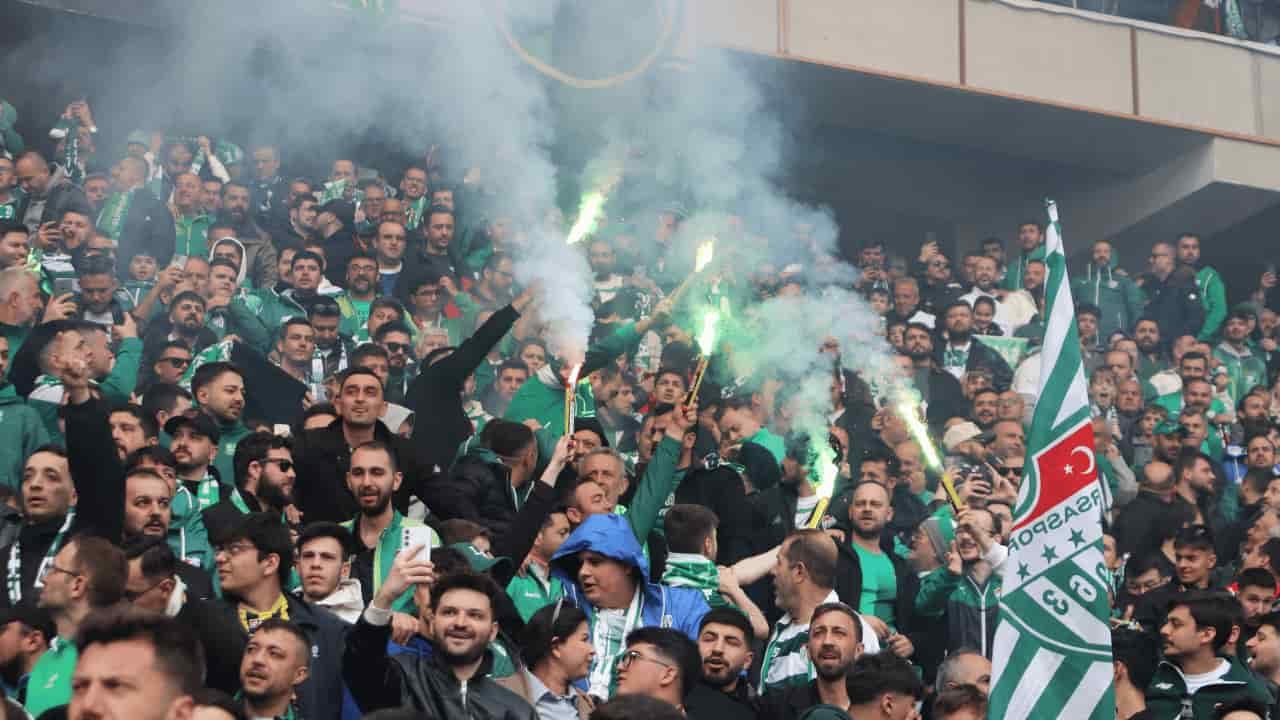Eskişehir’deki tribünleri tamamen yeşil-beyaza bürüyen Bursasporlular, maç boyunca sergiledikleri coşkulu destekle renkli görüntüler oluşturdu.