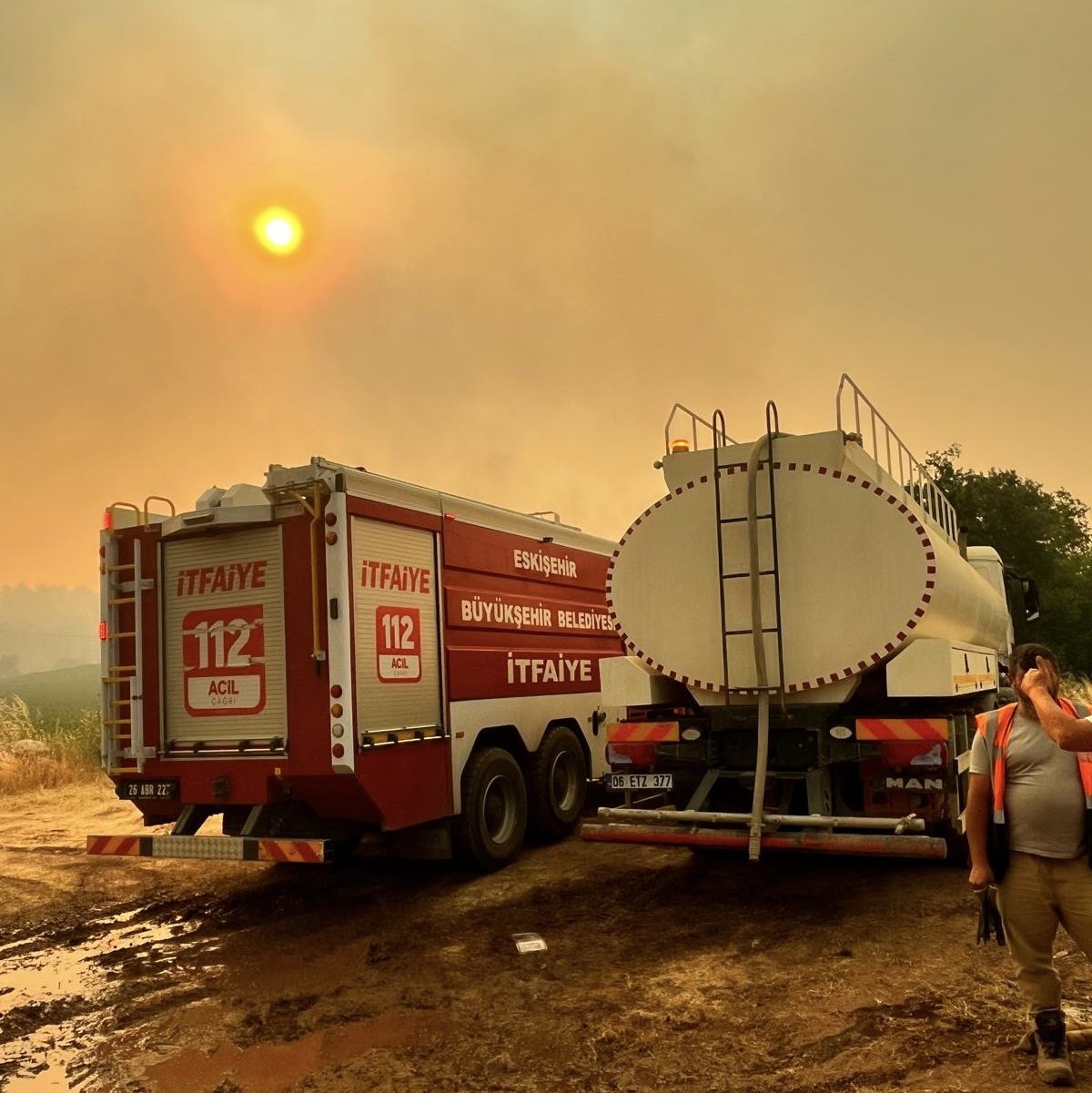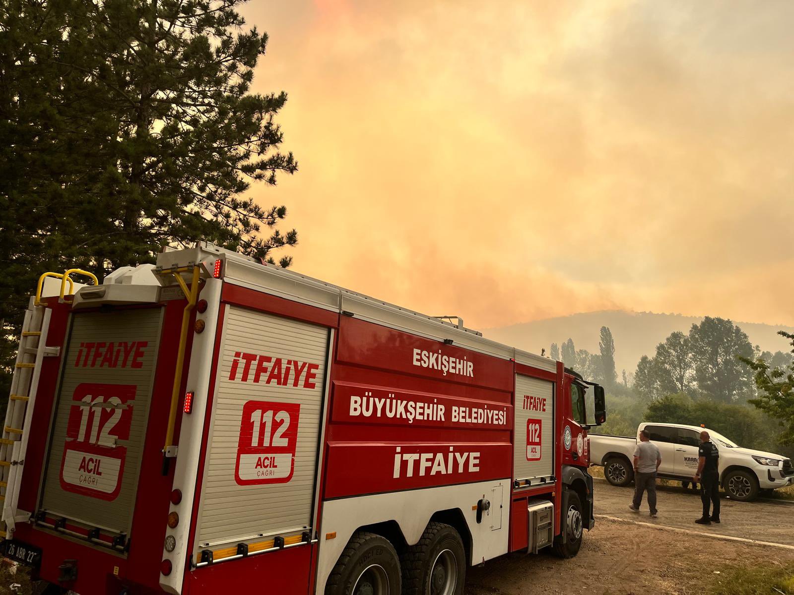 Eskişehir Büyükşehir Belediyesi İtfaiye Dairesi Başkanlığı başta olmak üzere Yol Yapım ve Bakım Onarım Dairesi, Park ve Bahçeler Dairesi ile İklim Değişikliği ve Sıfır Atık Dairesi ekipleri yangınla mücadelede sahada yer alıyor.