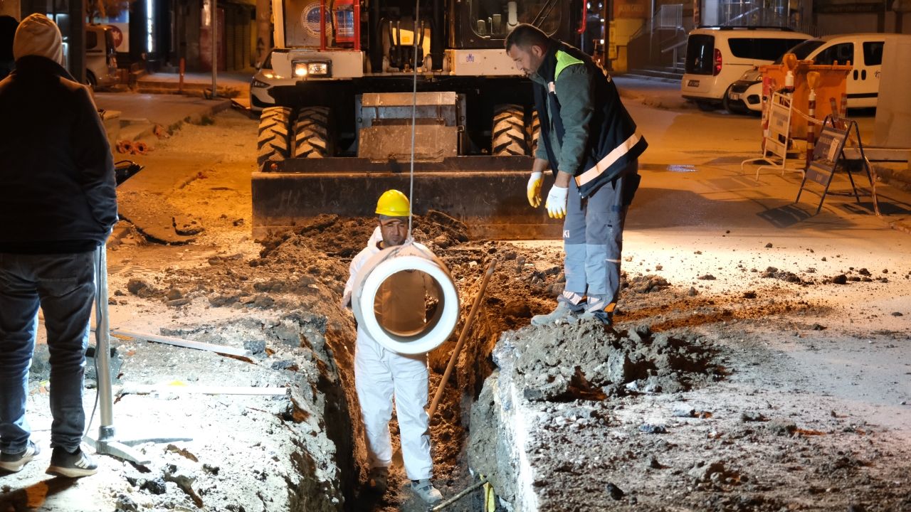 Altyapı çalışmaları, araç ve yaya trafiğinin yoğun olduğu bölgede şehir yaşamını aksatmamak amacıyla gece saatlerinde yürütüldü. ESKİ ekipleri, hattın deplase edilmesi kapsamında 400 mm çapında beton borular kullanarak 165 metre uzunluğunda yeni bir yağmur suyu hattı inşa etti.