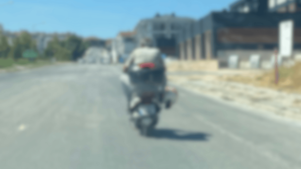Kaskı kullanmayan sürücünün bu davranışı hem kazalara karşı korumasız kalmasına neden oldu hem de görenlerin tepkisini çekti.