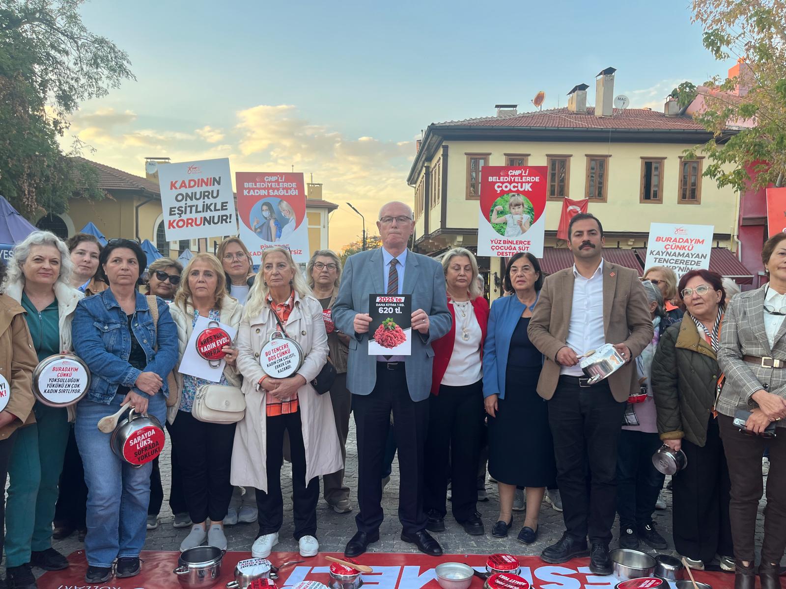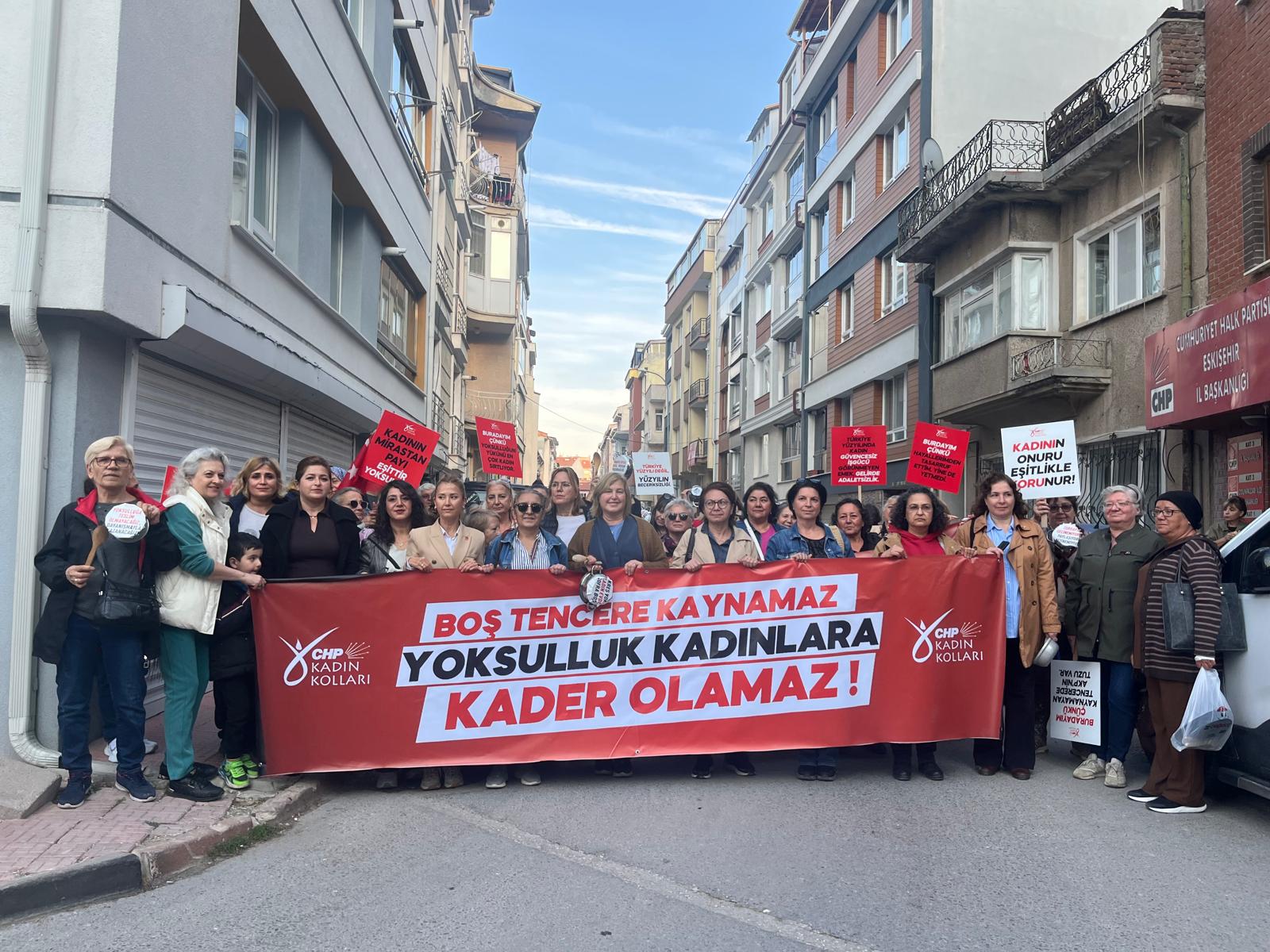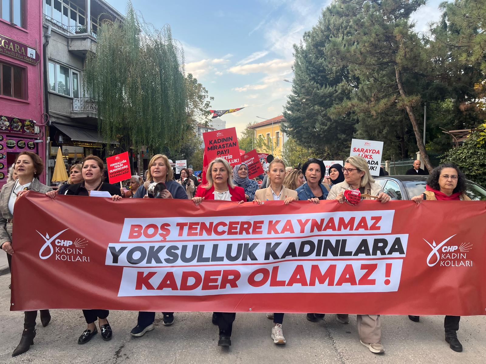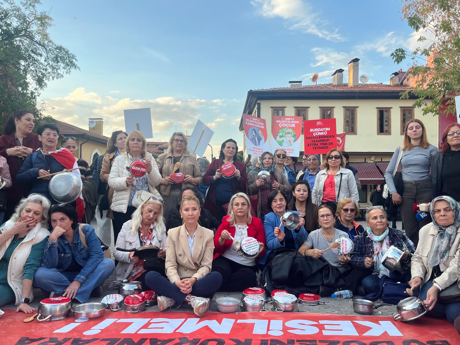 Cumhuriyet Halk Partisi (CHP) Eskişehir Kadın Kolları, 17 Ekim Dünya Yoksullukla Mücadele Günü dolayısıyla bir basın açıklaması gerçekleştirdi. CHP İl Başkanlığı önünde toplanan partililer, “Açlık değil, onurlu yaşam istiyoruz”, “Sarayda lüks, sofrada yokluk”, “Kurtuluş yok tek başına, ya hep beraber ya hiçbirimiz” sloganları atarak Odunpazarı Meydanı’na yürüdü. Katılımcılar, ellerinde tencere ve tavalarla yürüyerek ekonomik krize dikkat çekti.