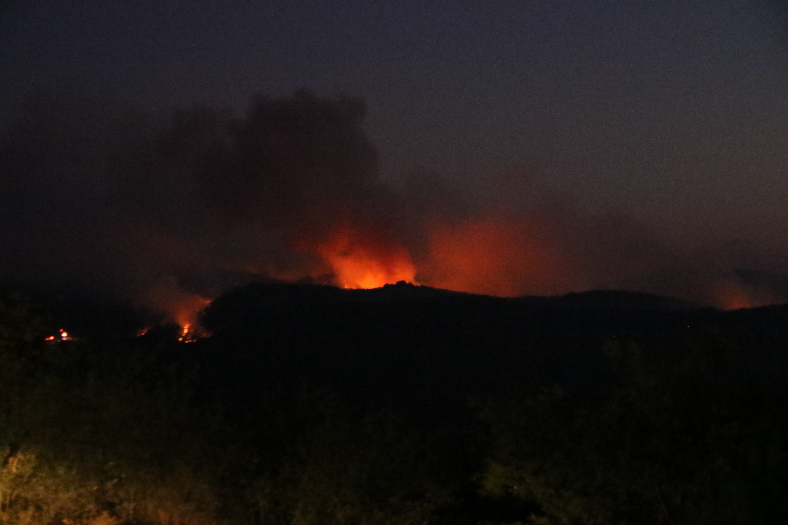 Havadan ve karadan saatlerce müdahale edilen yangın halen söndürülemezken, güneşin batmasıyla birlikte havadan müdahaleye ara verildi. Yangını söndürmek için karadan ekiplerin müdahalesinin sürdüğü belirtildi.