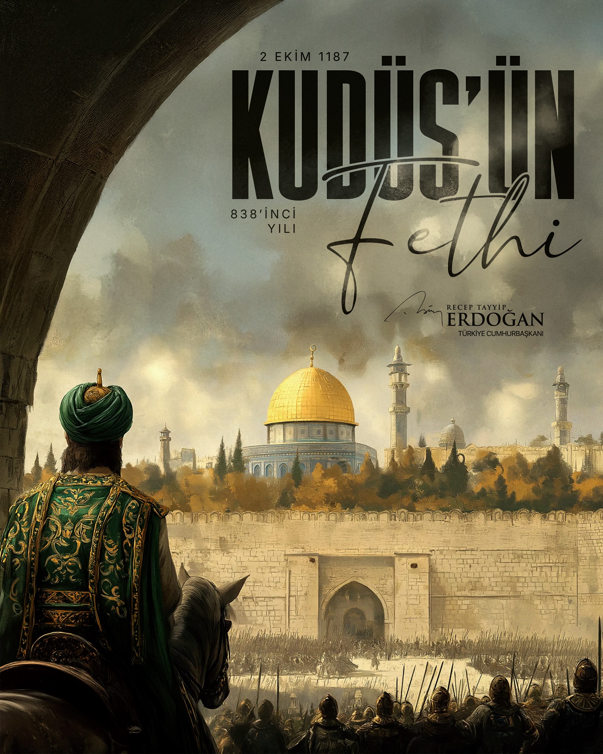 Cumhurbaşkanı Erdoğan sosyal medya hesabından yaptığı paylaşımında, "Kudüs’ün Fethi’nin 838’inci yıl dönümünde, bu mukaddes şehrin ikinci fatihi Selahaddin Eyyubi’yi ve kahraman askerlerini rahmetle yad ediyorum. Hazreti Nebi’nin ve ondan önce gelen peygamberlerin bizlere emaneti olan Kudüs için mücadele etmeyi azim ve kararlılıkla sürdüreceğiz" ifadelerini kullandı.