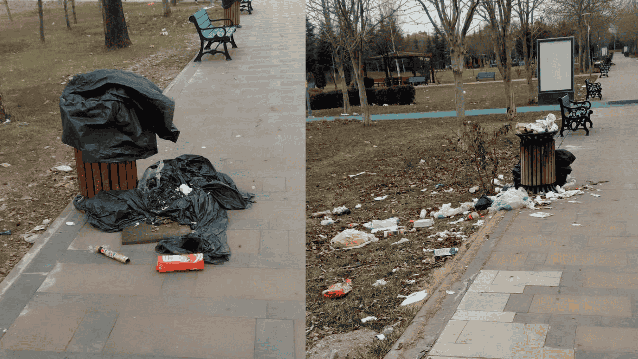 Parkta bulunan çöp kutularının taşması ve çöplerin alana yayılması, ziyaretçilerin rahatsız olmasına neden oldu.