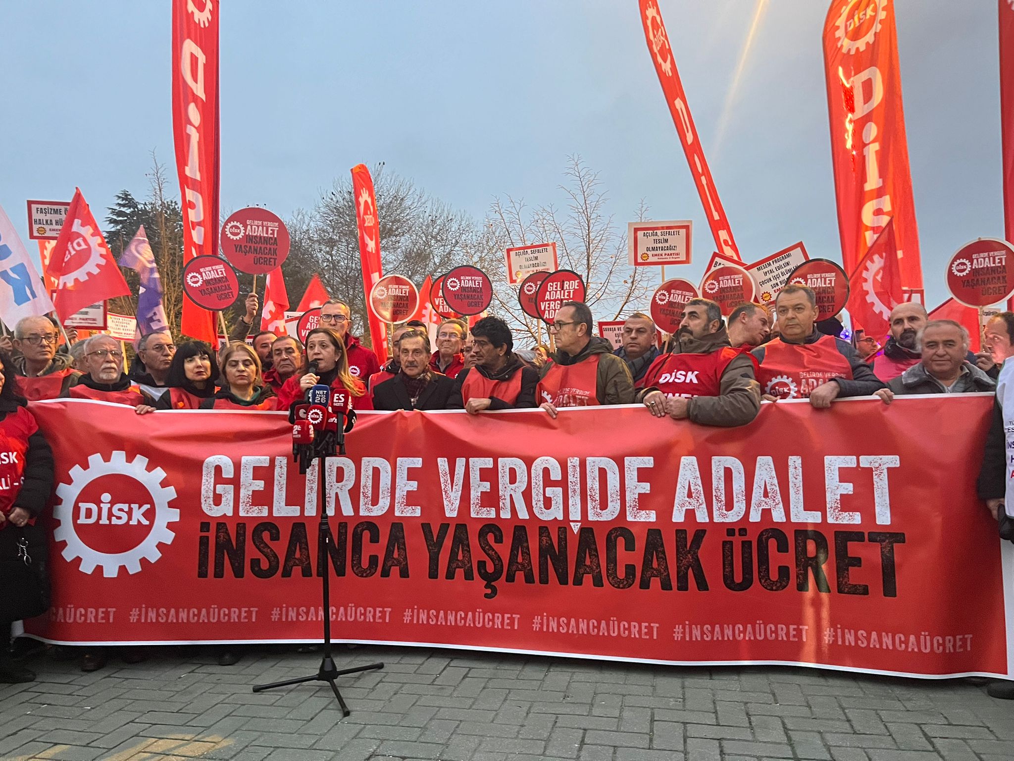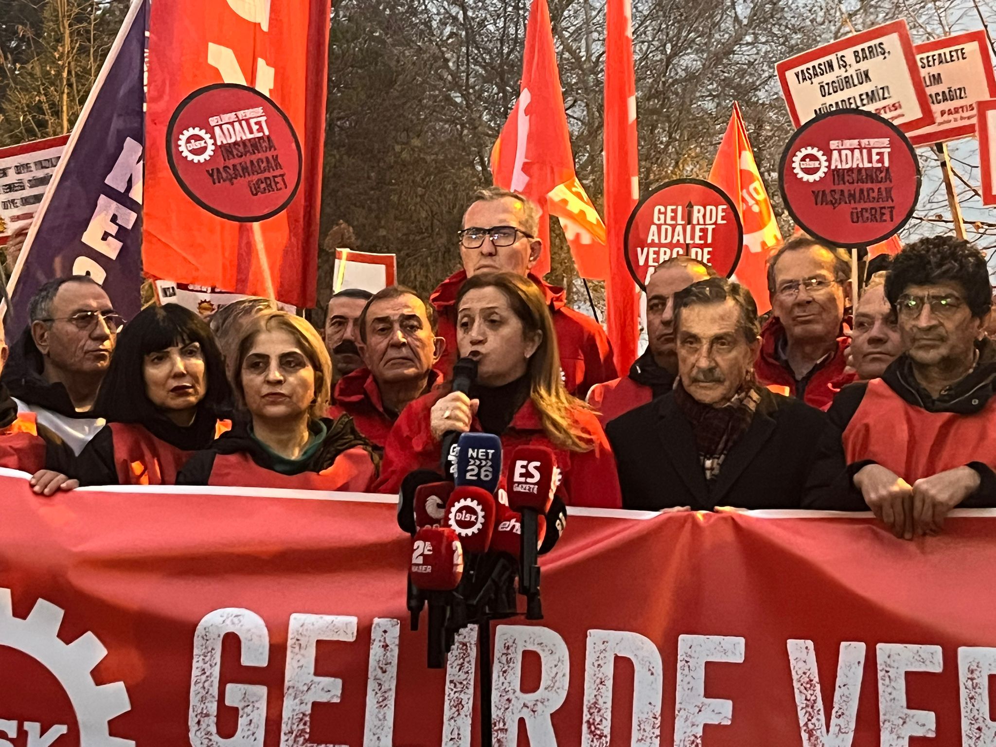 Asgari ücretin açlık sınırının altında kaldığını vurgulayan Çerkezoğlu, Asgari Ücret Tespit Komisyonu’nun 2026 yılı için yürüttüğü çalışmalara dikkat çekti. Milyonlarca asgari ücretlinin alım gücünün yıl içinde eridiğini ifade eden Çerkezoğlu, “İnsanca yaşayacak bir ücret için, asgari ücretin kişinin ailesiyle birlikte geçinebileceği düzeyde ve gerçek bir toplu pazarlıkla belirlenmesi için yürüyoruz” diye konuştu.