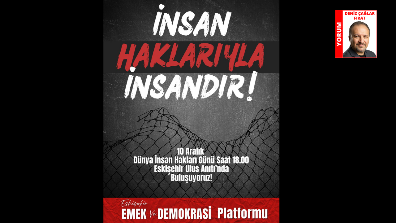 Eskişehir Emek ve Demokrasi Platformu tarafından 10 Aralık İnsan Hakları Günü nedeniyle bir afiş haber merkezimize ulaştırıldı. Afişte kocaman “İnsan Haklarıyla İnsandır” yazısı vardı.