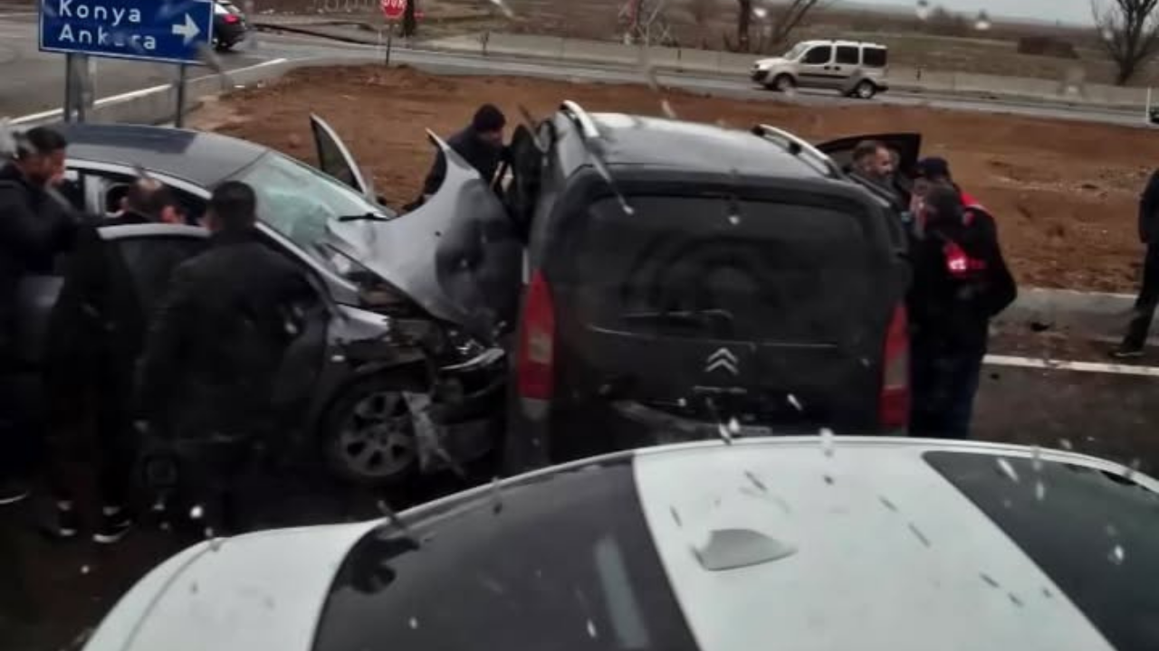 Eskişehir-Ankara yolu üstünde yer alan bir döner kavşakta yaşanan kazada, seyir halindeki otomobillerden biri, yanlış yola girdiği tahmin edilen ve geri dönüş yapmak isteyen diğer araca yandan çarptı.