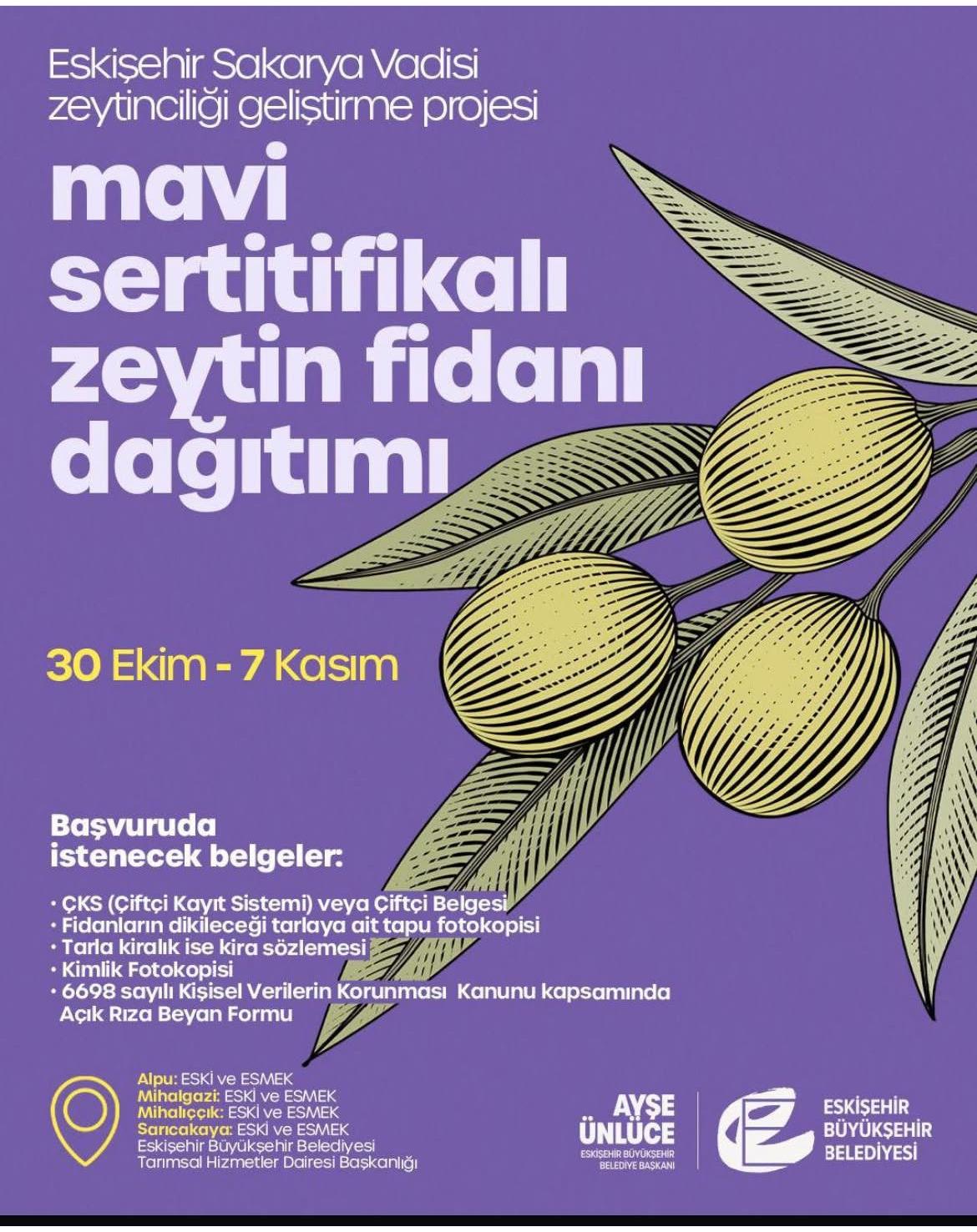 Bu girişimle, Eskişehir’in Sakarya Vadisi bölgesinde zeytin üretiminin artırılması ve bölgeye özgü zeytin markalarının oluşması amaçlanıyor.