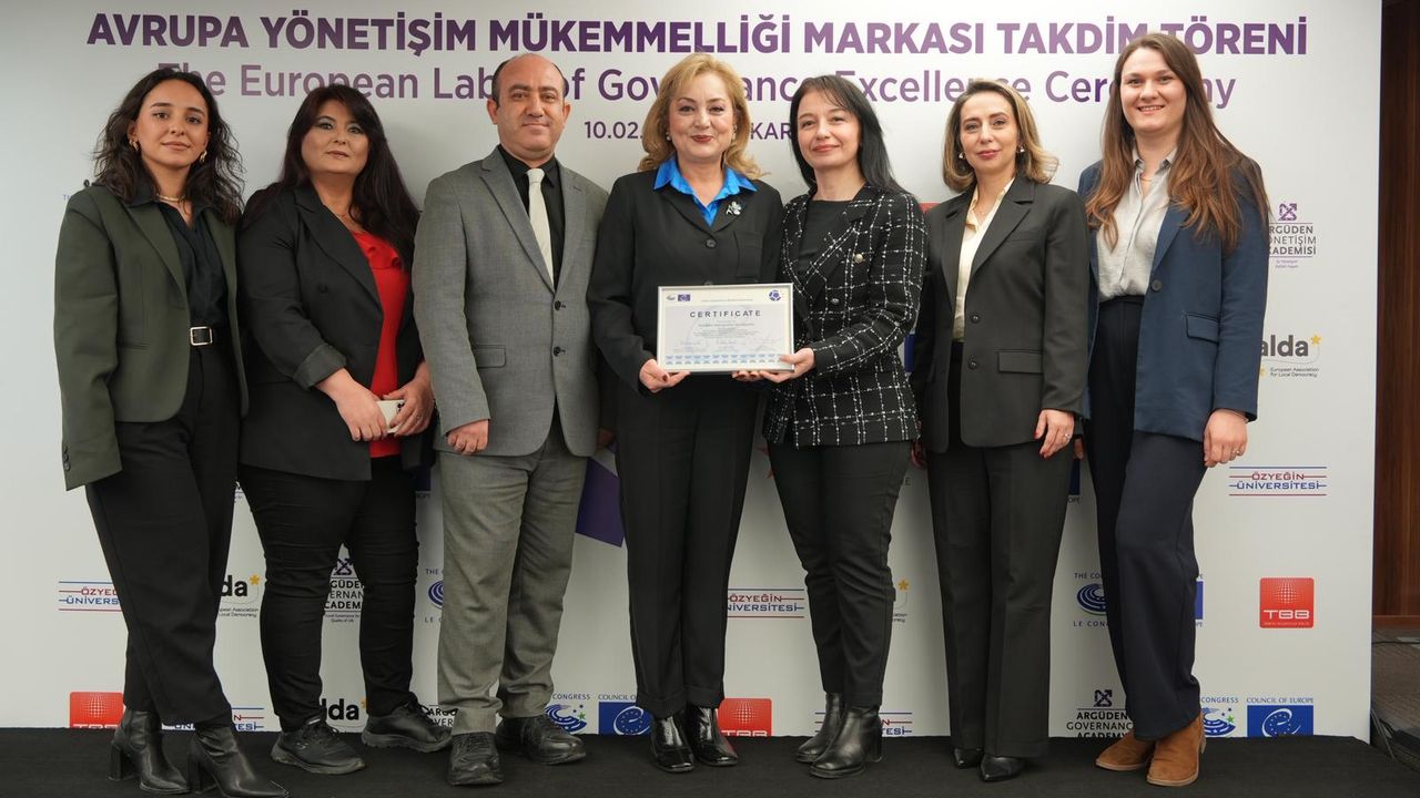 Ankara’da düzenlenen ELoGE 2025 Ödül Töreni, Türkiye Belediyeler Birliği’nin ev sahipliğinde gerçekleştirildi. Törende, Avrupa Yönetişim Mükemmelliği Markası’nı bir yıl süreyle kullanma hakkı kazanan belediyelere ödülleri takdim edildi. Eskişehir Büyükşehir Belediyesi’ni törende Genel Sekreter Yardımcısı Avukat Nergiz Abacı, Strateji Geliştirme Dairesi Başkanı Sıla Senem Bükülmez ve daire başkanlığı personeli temsil etti.