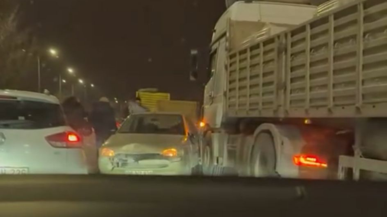 Eskişehir çevre yolu Ankara yönünde kamyon ile otomobilin çarpışması sonucu trafik durma noktasına geldi.