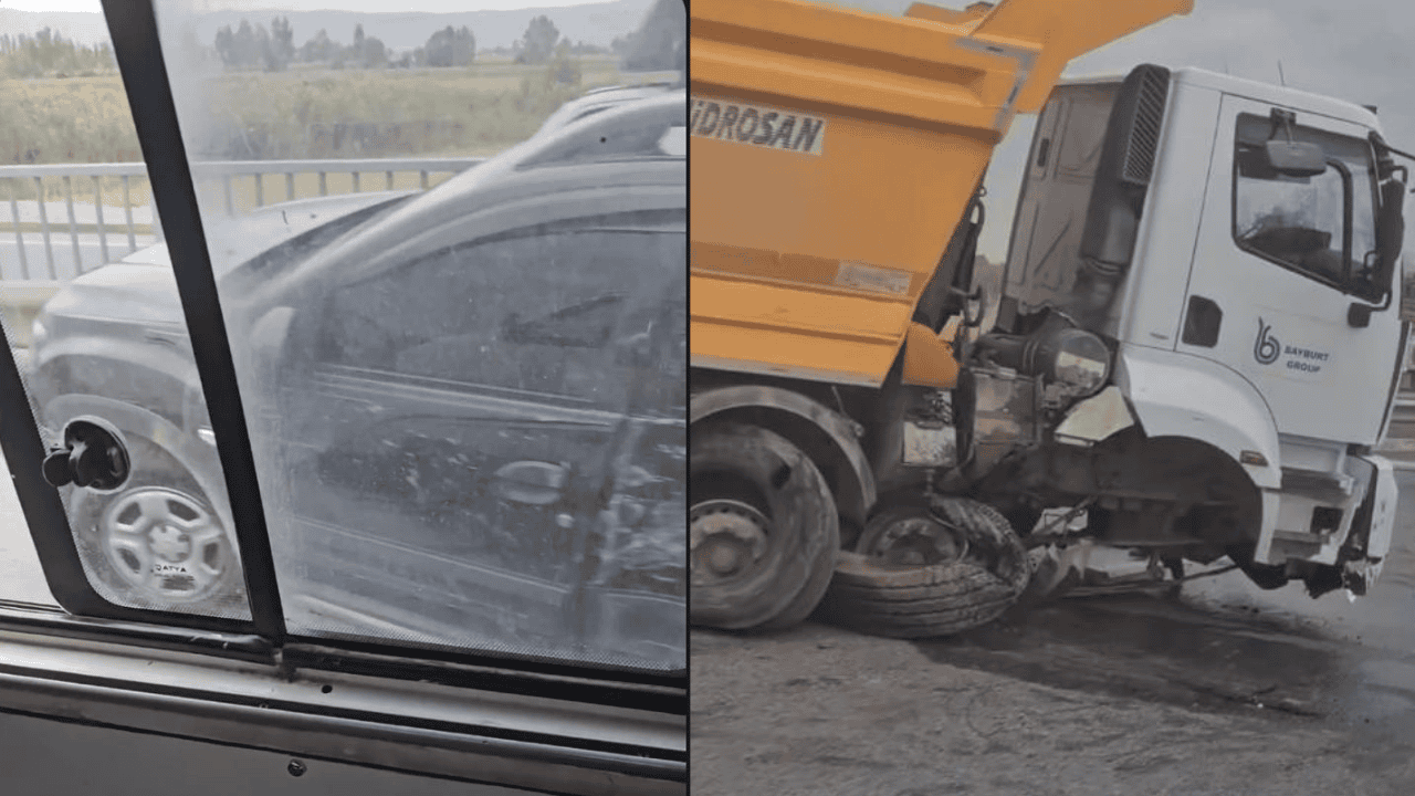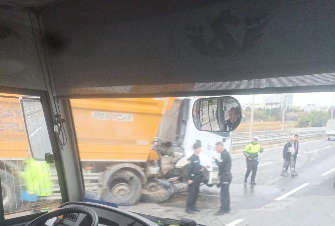 Çarpışmanın etkisiyle tır yol kenarındaki bariyerlere çarparak durabildi.