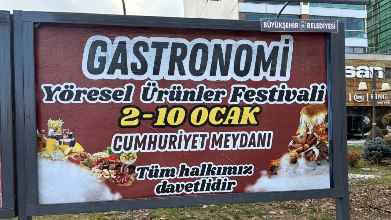 Eskişehir’de yeni yılın ilk günlerinde pek çok bölgede ‘gastronomi yöresel ürün festivali’ ilanları görüldü. Kimi ağaca kimi direğe bağlanmış… Açık hava reklamlarında da bolca tanıtımı yapıldı. Söz konusu ‘festivalin’ 2-10 Ocak 2026 tarihleri arasında Cumhuriyet Meydanı’nda yapılacağı duyuruldu.