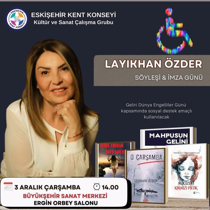 Etkinlik kapsamında yazar Layıkhan Özder ile bir söyleşi gerçekleştirilecek ve katılımcılar, yazarın kitaplarını imzalatma fırsatı bulacak. Etkinlikten elde edilecek gelir, sosyal destek amaçlı kullanılacak.