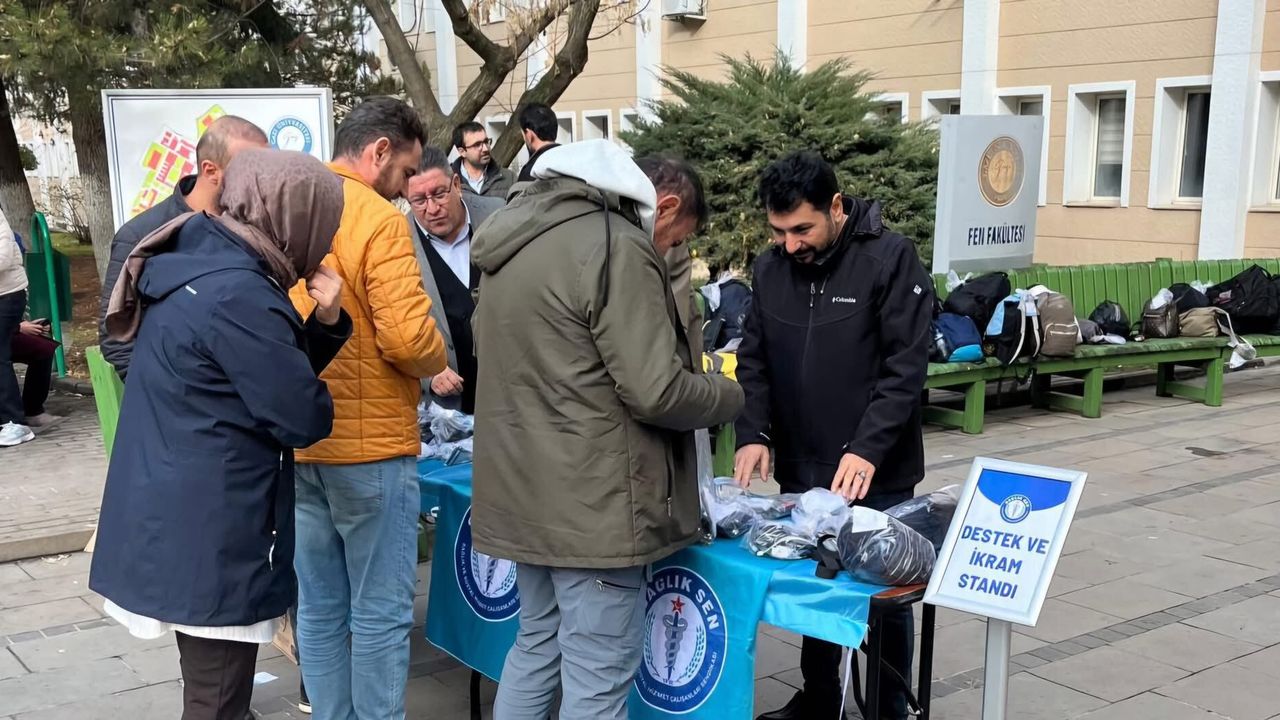 Sağlık personellerinin özel eşyalarını koruyarak ikramlarda bulunan Eskişehir Sağlık Sen, "2026 Yılı Hac Organizasyonunda görev almak isteyen sağlık profesyonellerimizi bugün girdikleri sınavda yalnız bırakmadık" dedi.