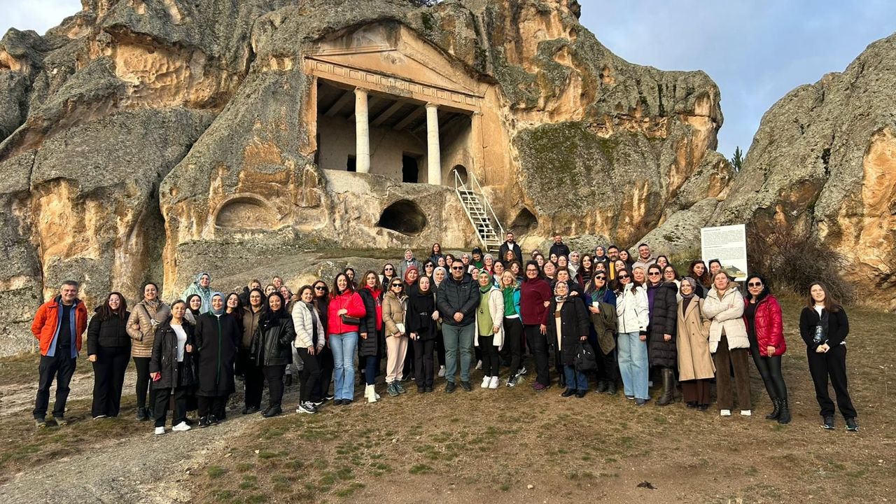 Pazar günü ise Kadın Kolları tarafından düzenlenen Frig Vadisi kültür ve doğa turu, katılımcıları tarihin, kültürün ve doğal güzelliklerin buluştuğu benzersiz bir yolculuğa çıkardı. Ayazini’nin mistik dokusu, Emre Gölü’nün kartpostal tadındaki manzarası ve Frig Vadisi’nin binlerce yıllık medeniyet izleri, kadın sağlık çalışanlarına huzur dolu bir keşif imkânı sağladı. Yazılıkaya’daki görkemli kaya anıtları Frig uygarlığının ihtişamını gözler önüne sererken, Seyit Battal Gazi Türbesi ise maneviyat dolu atmosferiyle ziyaretçilere unutulmaz duygular yaşattı.