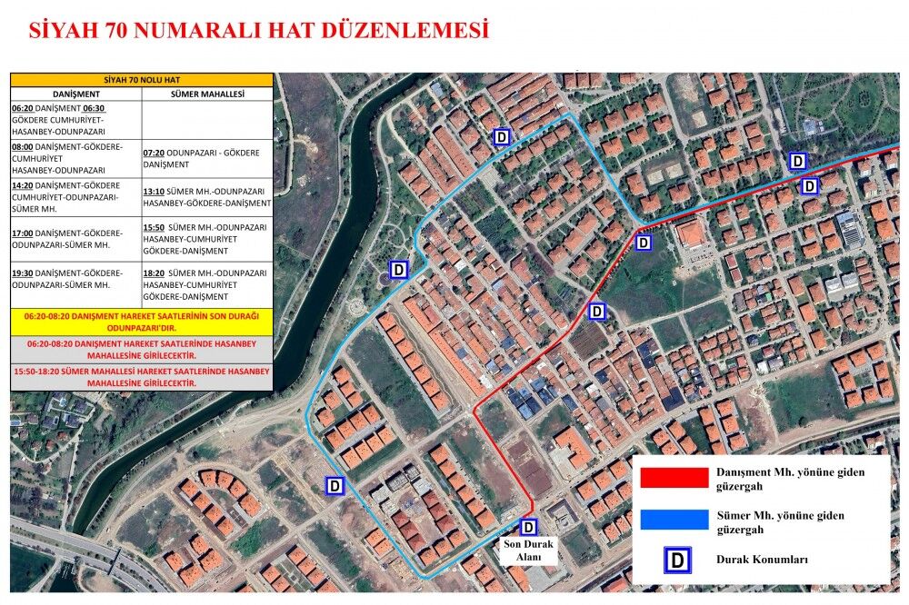Düzenleme yapılan Siyah 2 numaralı hat Yeşiltepe Mahallesi’ne, Siyah 9 numaralı hat Otogar bölgesine, Siyah 70 numaralı hat Danişment Mahallesi’ne, ulaşım sağlamak amacıyla hizmet veriyor.