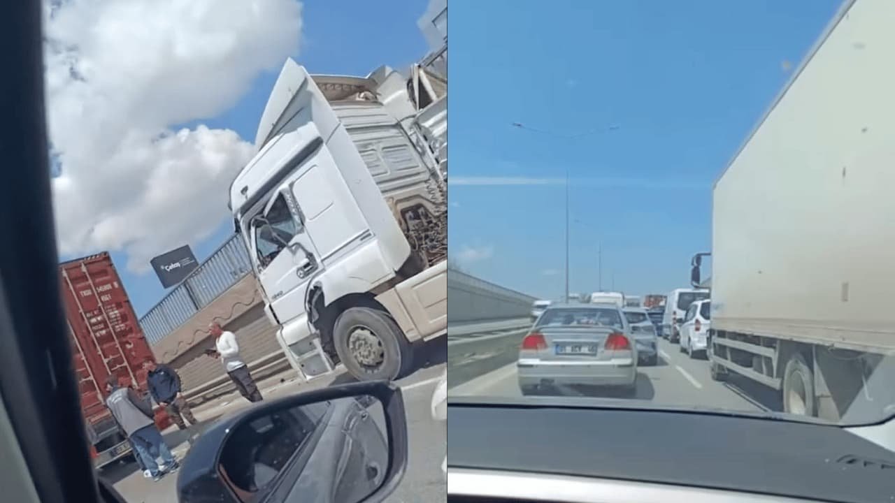 Çarpışmanın etkisiyle tırlarda küçük çaplı maddi hasar oluştuğu öğrenildi.