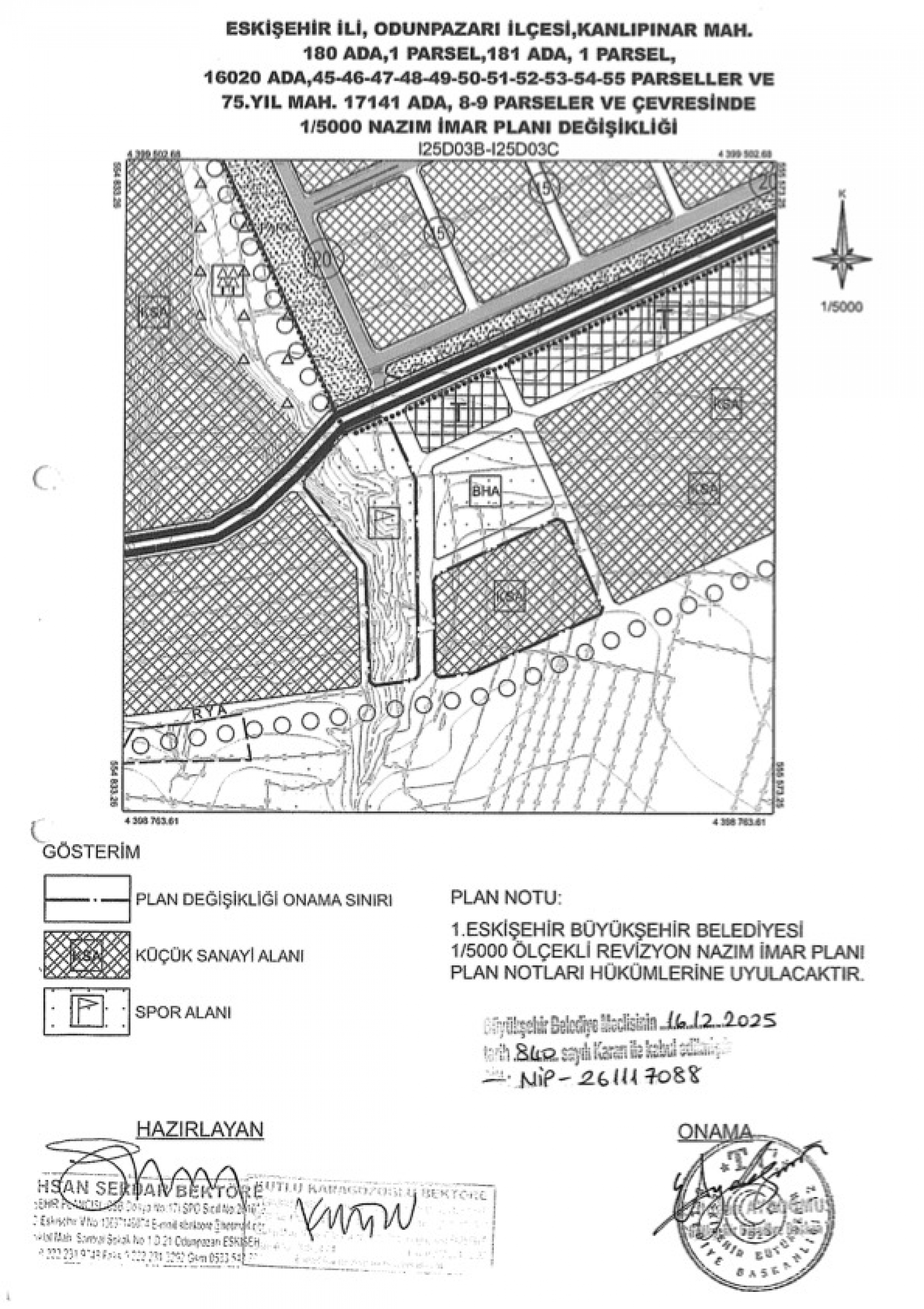 Buna göre, 21580 metrekare büyüklüğündeki Küçük Sanayi alanı Spor Alanı olarak, 21765 metrekare büyüklüğündeki Spor Alanı ise Küçük Sanayi alanı olarak düzenlendi.