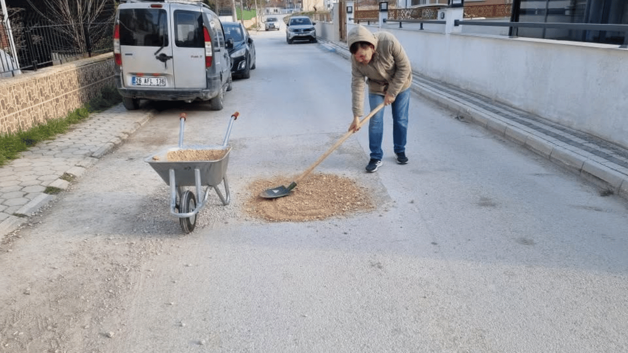 Bozuk yollar belediye tarafından onarılmayınca vatandaşlar, kendi imkanlarıyla soruna çözüm bulmaya çalışıyor.