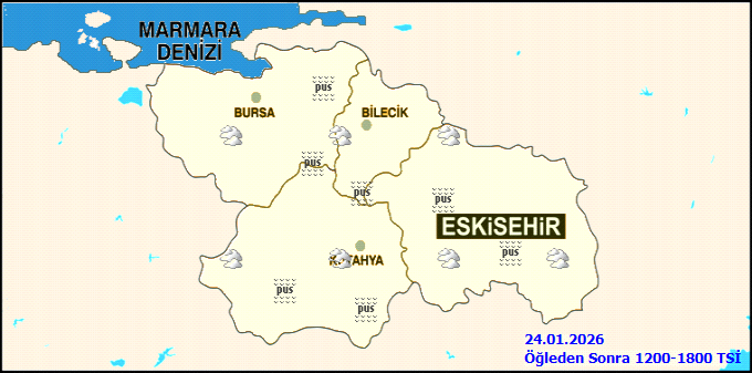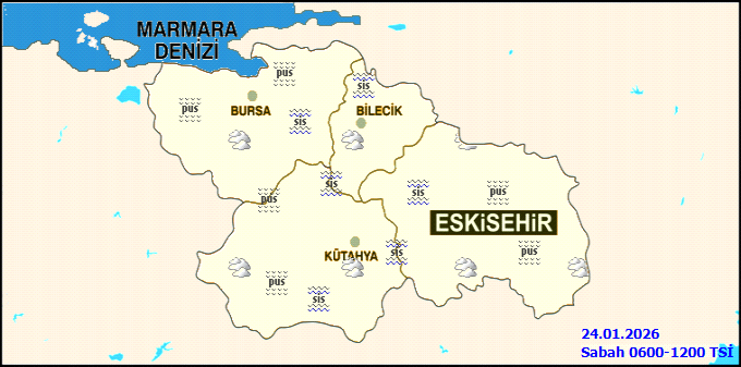 Bölgede havanın çok bulutlu olacağı, akşam ve gece saatlerinde Kütahya ve Eskişehir illerinin güney kesimleri ile Bursa il merkezinin güneyi, Keles ve Bozüyük çevrelerinde hafif yağışlar görüleceği tahmin edilmektedir. Yağışların genellikle yağmur, yüksek kesimlerde karla karışık yağmur ve kar şeklinde olması beklenmektedir. Ayrıca yine bölge genlinde sis ve pus hadiseleri beklenmektedir.