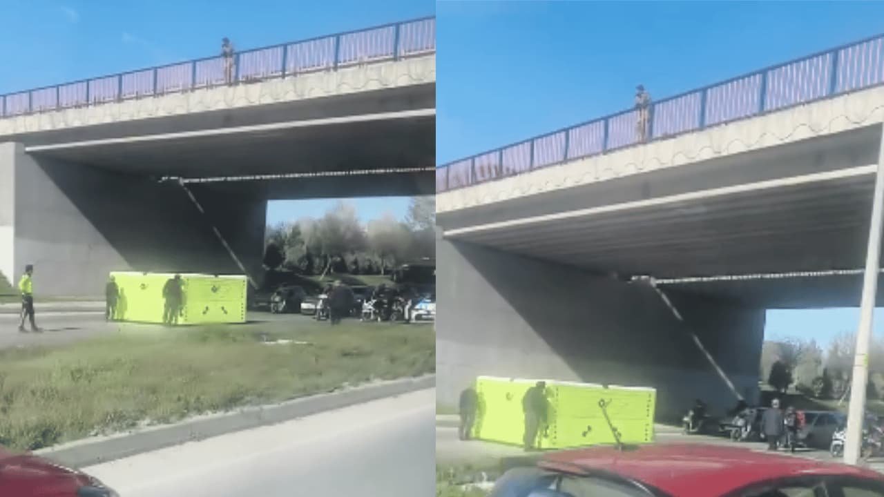 Eskişehir Çevre Yolu'nda bir şahıs üst geçide çıkarak canına kıymaya kalktı.
