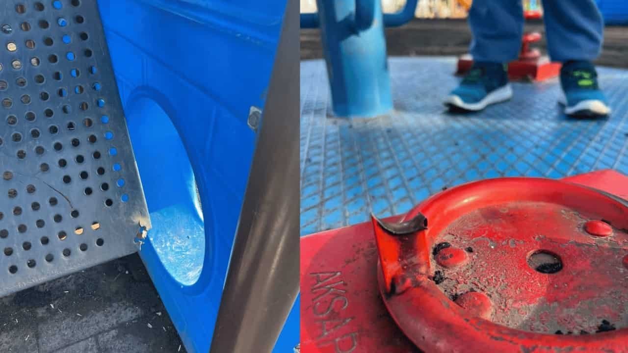 Parktan paylaşılan görüntülerde, parkın pis olduğu ve çocukları için konulan oyuncakların kırıldığı ve tehlikeli metal parçaların bulunduğu görüldü.
