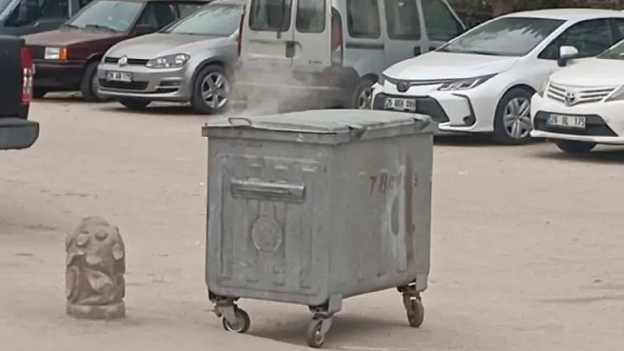 Eskişehir'in Yenidoğan Mahallesi'nde Yunus Emre Tramvay Durağı'nın çevresinde bulunan bir çöp konteynırından dumanlar yükseldiği görüldü.