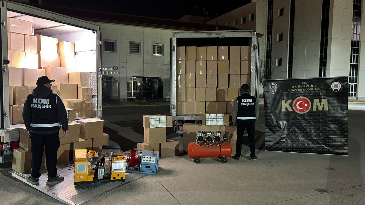 Ekipler tarafından gerçekleştirilen kapsamlı operasyon sonucunda, 5 milyon 800 bin adet bandrolsüz boş makaron, 60 bin adet doldurulmuş makaron, 205 kilogram açık kıyılmış tütün, 2 adet sigara sarma makinesi, 1 adet kompresör ele geçirildi.