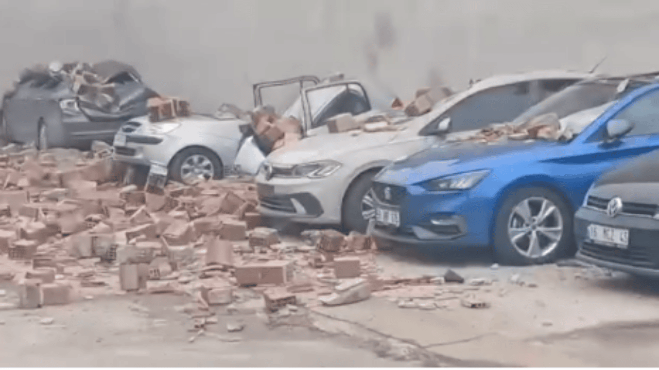 Devrilen yapı parçaları, sokakta park halinde bulunan araçların üzerine düştü. Olayda araçların çoğu ciddi şekilde hasar görerek kullanılamaz hale geldi.