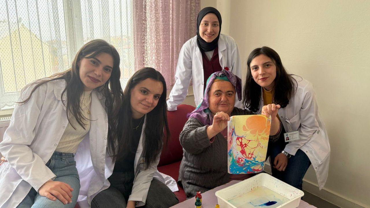 Eskişehir Osmangazi Üniversitesi Hemşirelik Bölümü öğrencileri, Halis Toprak Huzurevi Yaşlı Bakım ve Rehabilitasyon Merkezi’nde kalan yaşlı bireylerle bir araya gelerek “Ebru Sanatı” etkinliği gerçekleştirdi.