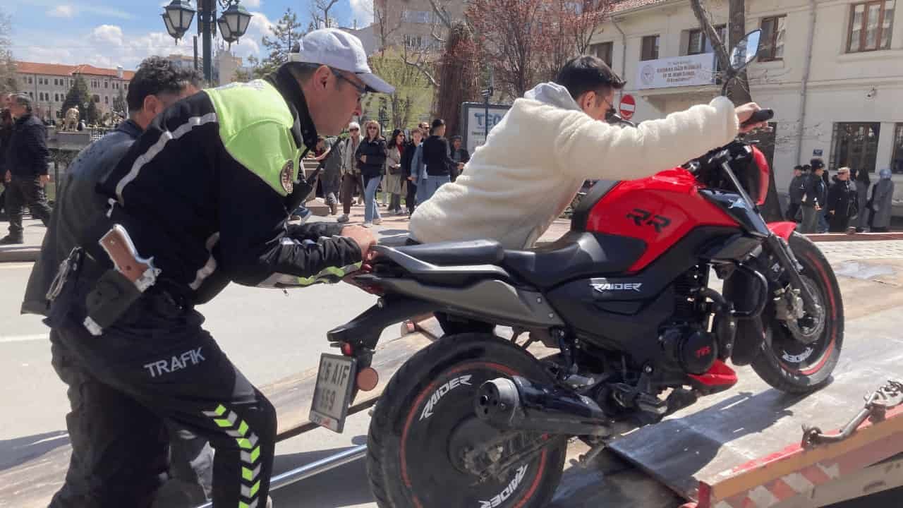 Cezai işlemin ardından F.E. isimli sürücünün kullandığı motosiklet, trafikten men edilerek çekici yardımıyla otoparka çekildi.