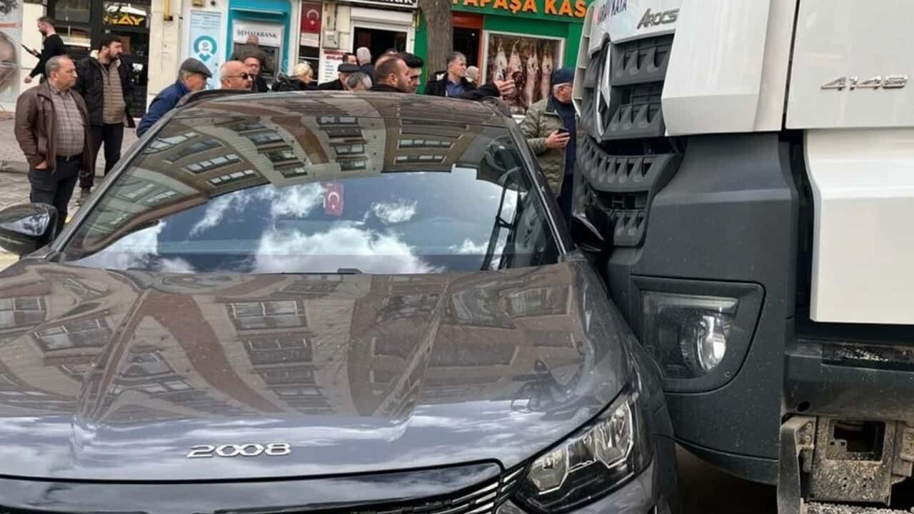 İddialara göre, Eskişehir Ziyapaşa Caddesi’nde seyir halinde olan otomobili kamyon sürücüsü sollamaya çalıştı. O sırada meydana gelen kazada kamyon otomobili 10 metre kadar sürükledi. Kaza sonrası caddede bulunan vatandaşlar polis ve sağlık ekiplerine ihbarda bulundu.