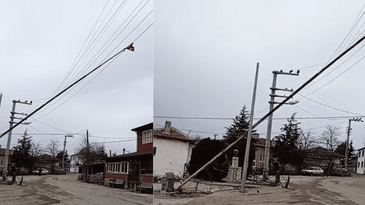 Eskişehir Seyitgazi ilçesinde sabah saatlerinden itibaren etkili olan şiddetli fırtınada yaşanan olay yürekleri ağza getirdi. Yaklaşık 30 metre uzunluğundaki bayrak direği, kuvvetli rüzgarın etkisiyle devrilerek elektrik tellerinin üzerine düştü.