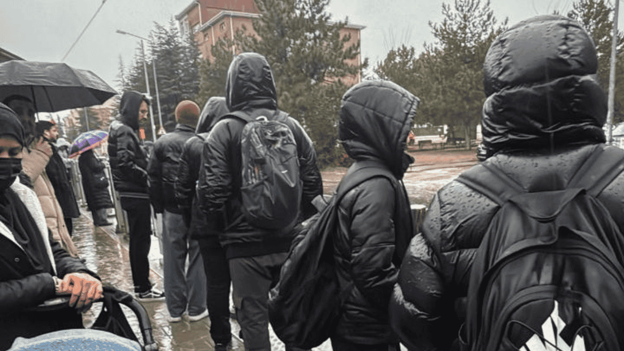 Duraklarda bekleyen vatandaşlar, tramvayın yaklaşık yarım saat boyunca gelmemesi nedeniyle yağmur altında beklemek zorunda kaldı.