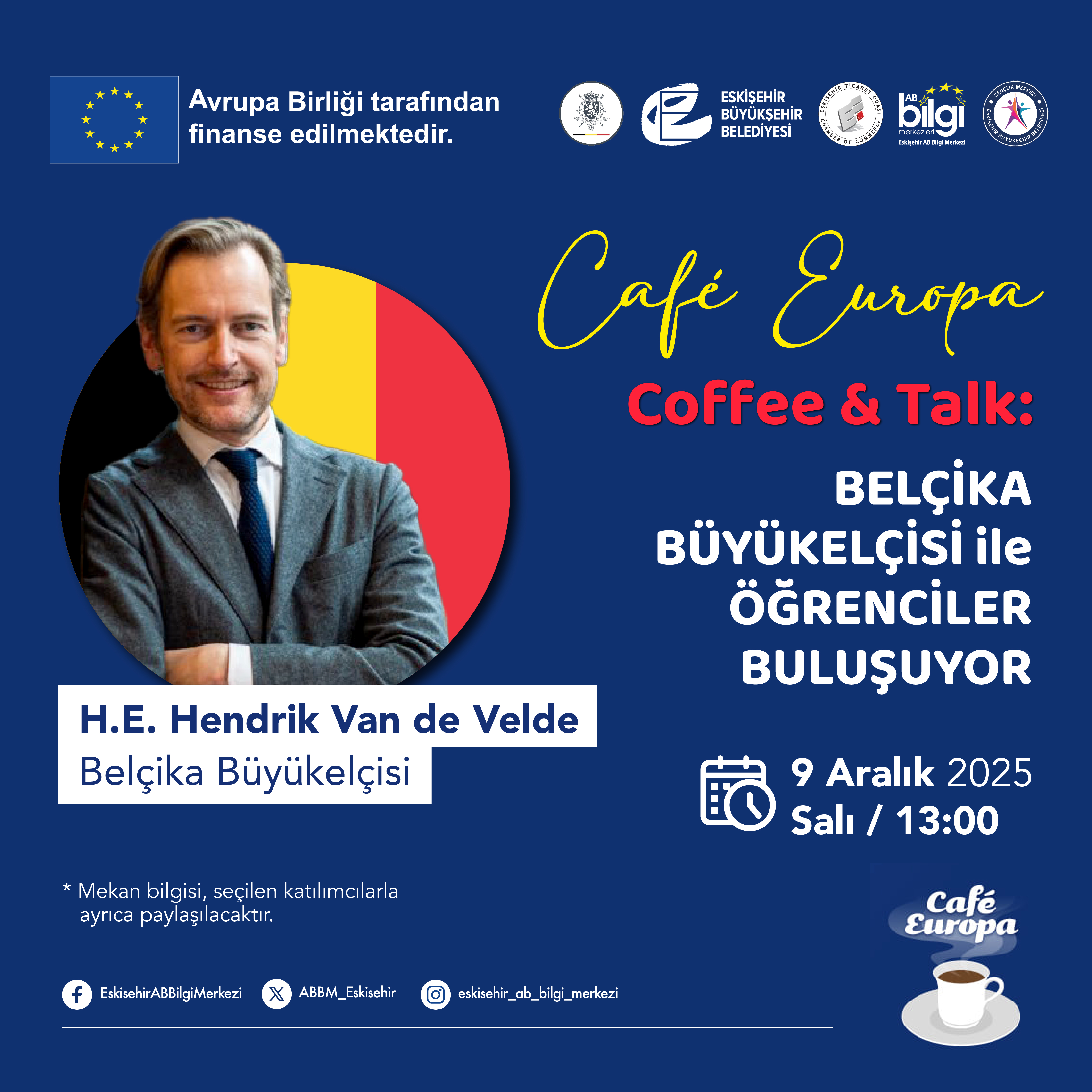 Eskişehir Ticaret Odası çatısı altında faaliyet gösteren AB Bilgi Merkezi, Avrupa ülkelerinin temsilcilerini gençlerle buluşturarak uluslararası diyalog fırsatları sunuyor. 9 Aralık Salı günü Belçika’nın Türkiye Büyükelçisi Hendrik Van De Velde gençlerle bir araya gelecek. Büyükelçi Van De Velde, Belçika’nın AB perspektifi, Türkiye–AB ilişkilerine yaklaşımı, Erasmus ve değişim programları, Avrupa’da gençlik deneyimleri ve Belçika-Türkiye gençliği arasında iş birliği imkanları gibi konuları katılımcılarla paylaşacak ve soruları yanıtlayacak.