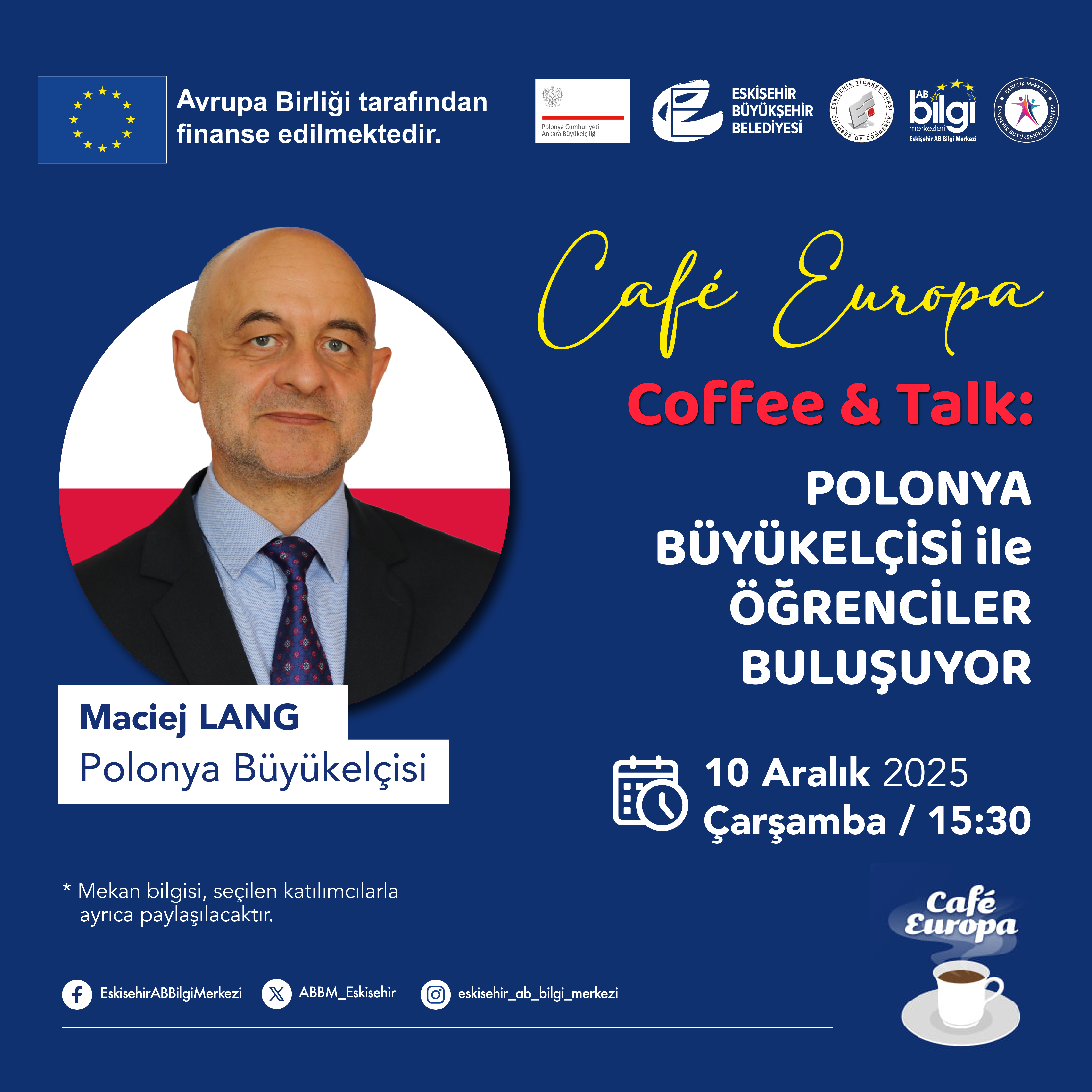 10 Aralık Çarşamba günü Polonya’nın Türkiye Büyükelçisi Maciej Lang, gençlerle sohbet edecek. Bu buluşmada, Polonya’nın Türkiye’nin AB üyeliğine bakışı, AB Dönem Başkanlığı tecrübeleri, AB’deki güncel gelişmeler ve Avrupa Koleji Natolin/Varşova burs programları ile Türk öğrencilere sunulan fırsatlar konuşulacak.